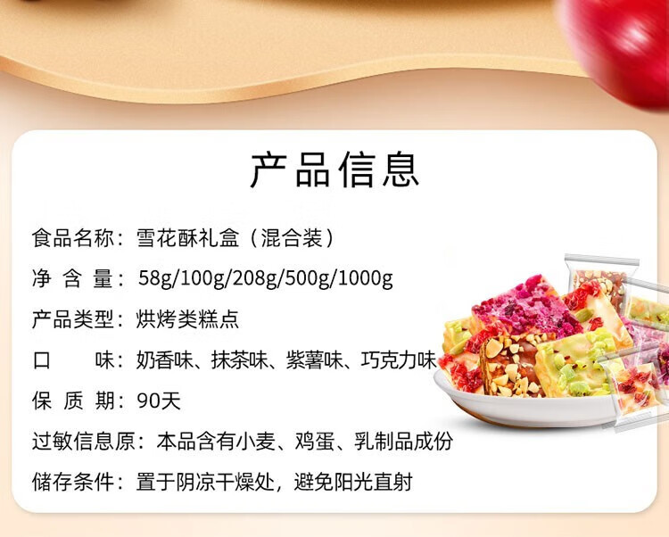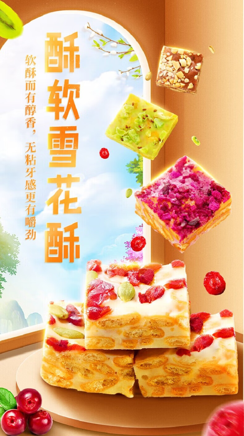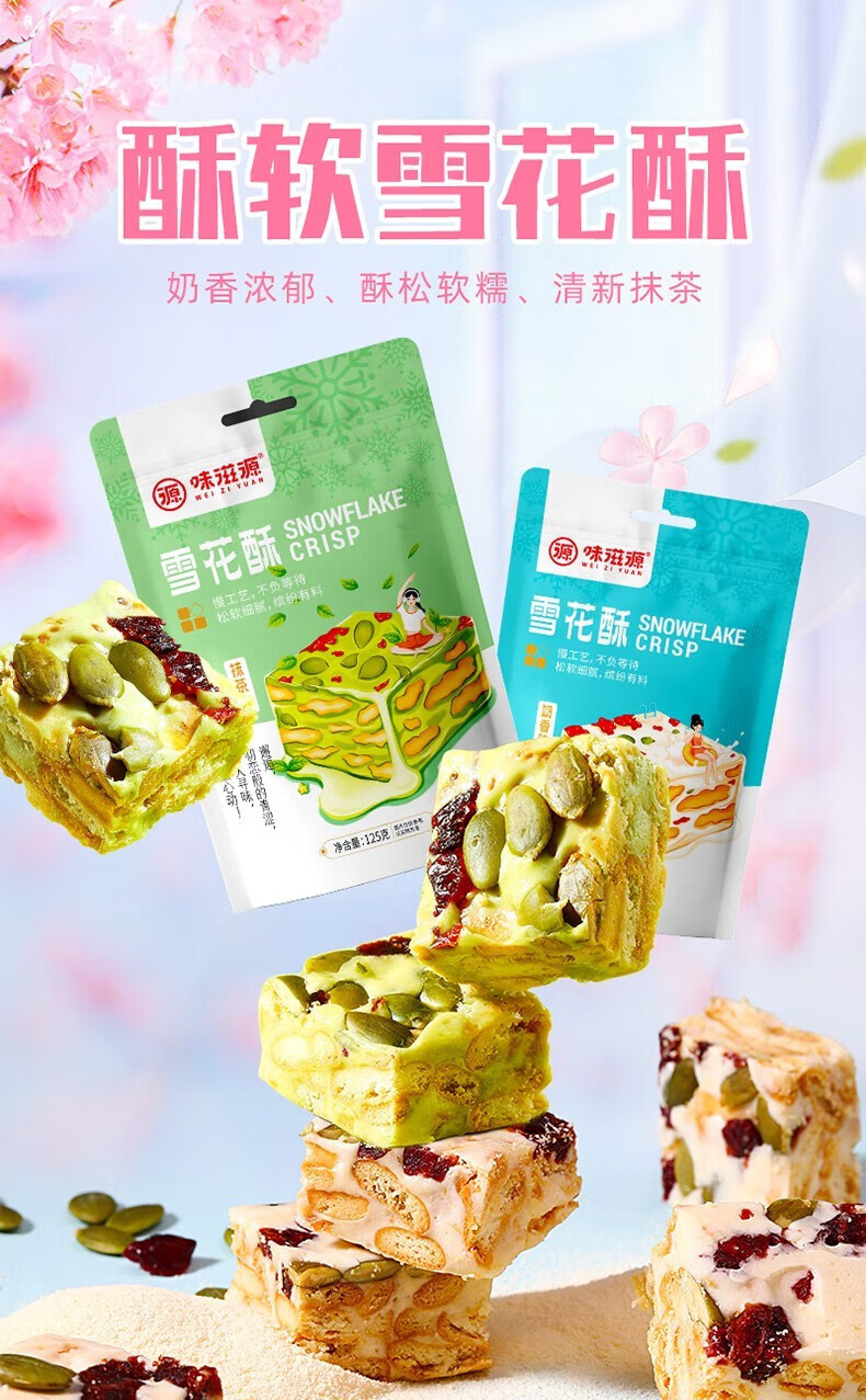 味滋源 雪花酥 网红零食礼盒装软牛轧奶芙抹茶巧克力糕点小吃-2 雪花酥 抹茶味 125克 1件