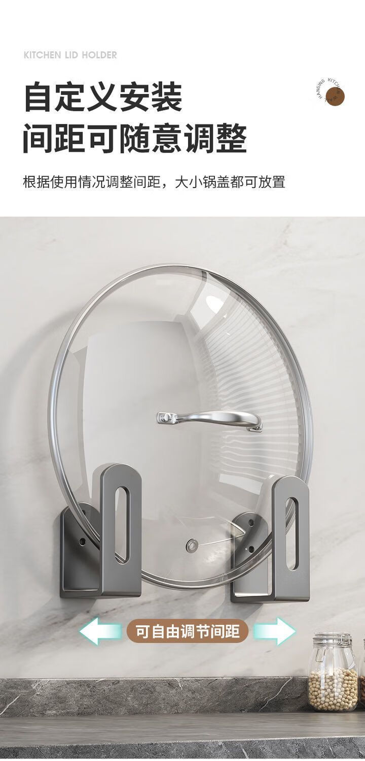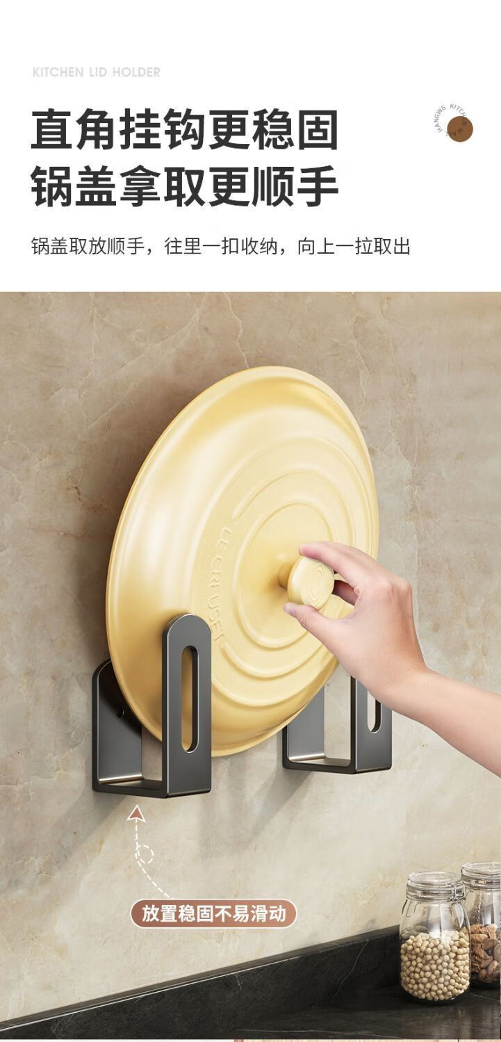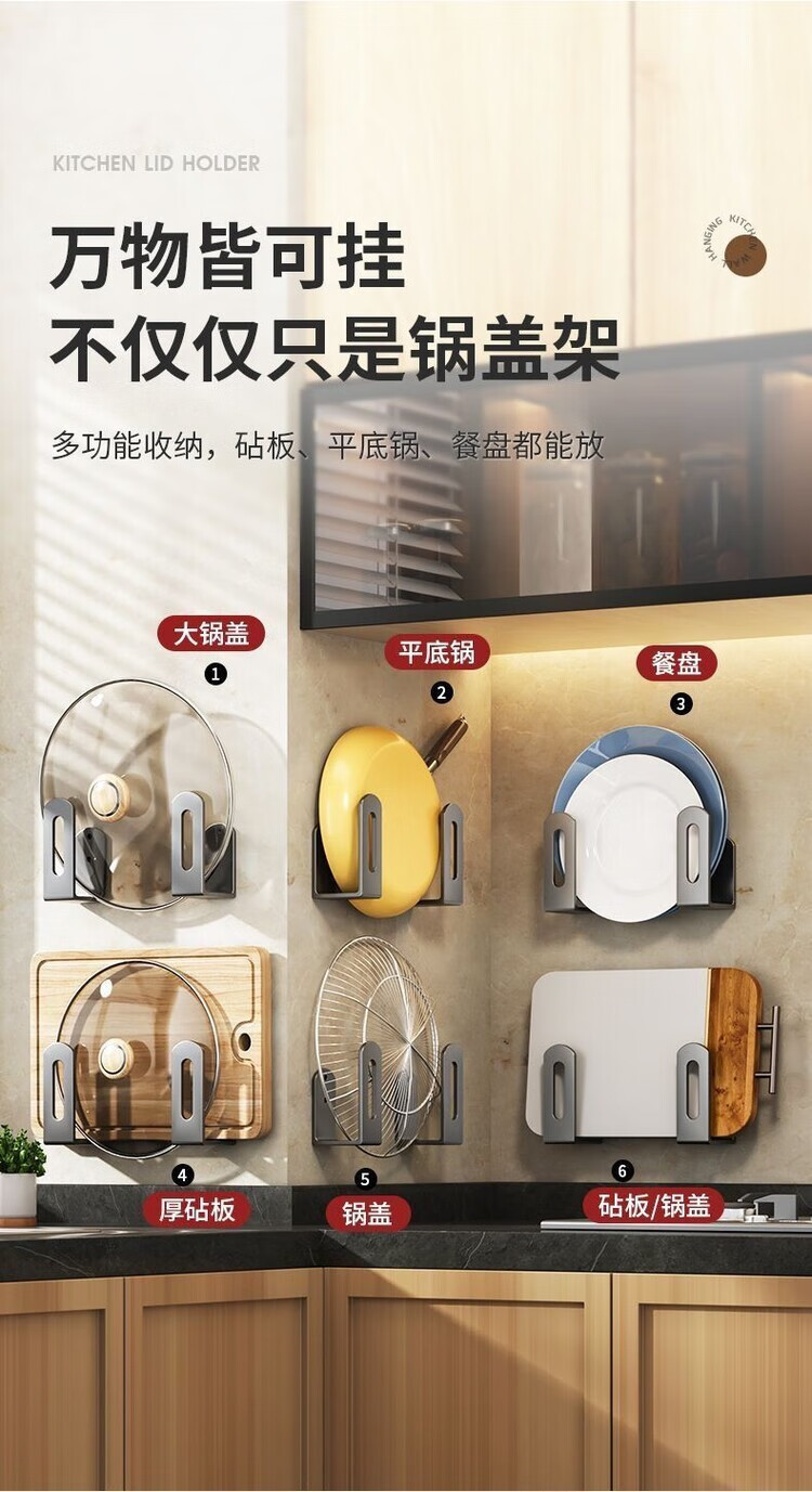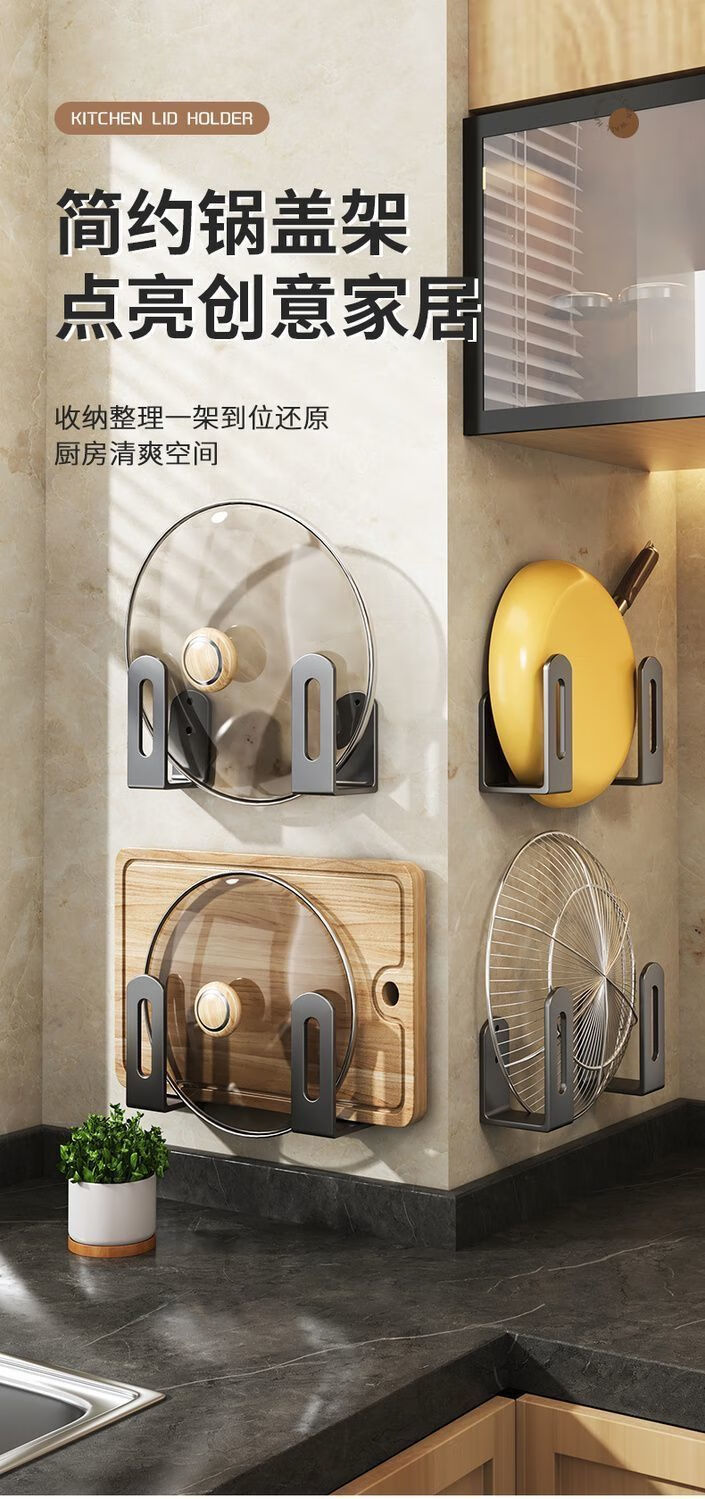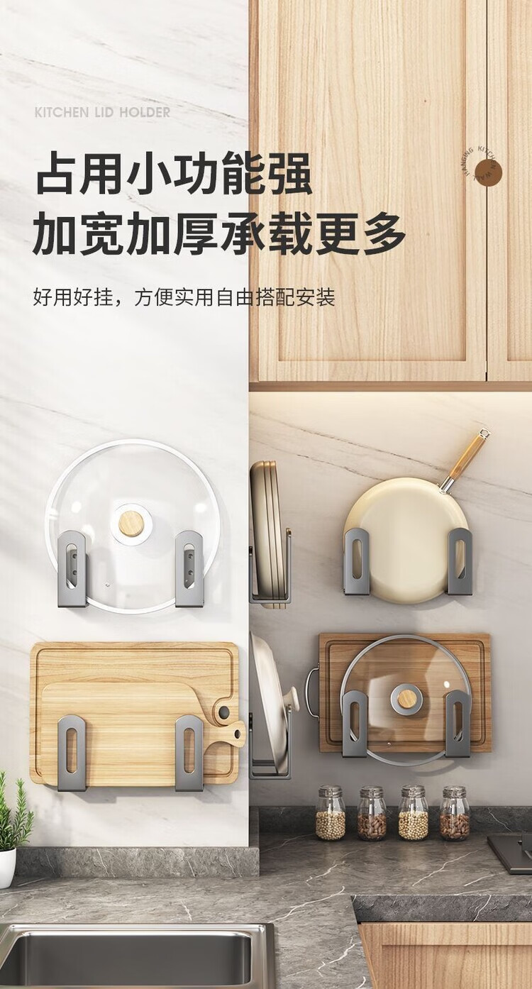 简漾锅盖架厨房置物架壁挂式免打孔放菜板砧板多功能墙上收纳神器挂钩 灰色【超强承重50kg】 2套4个装丨送免钉胶丨加厚12+