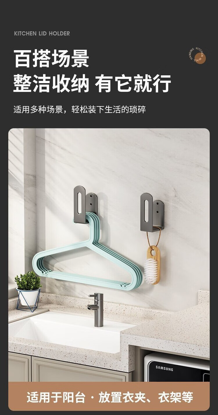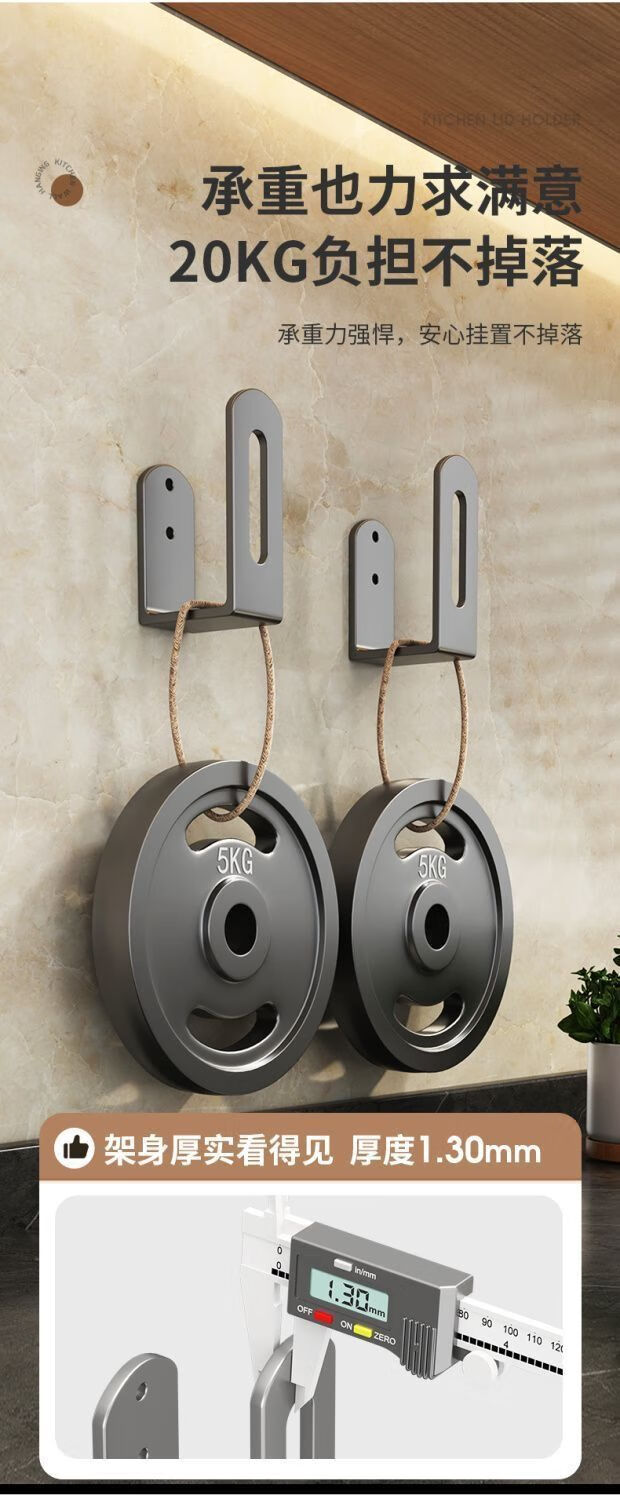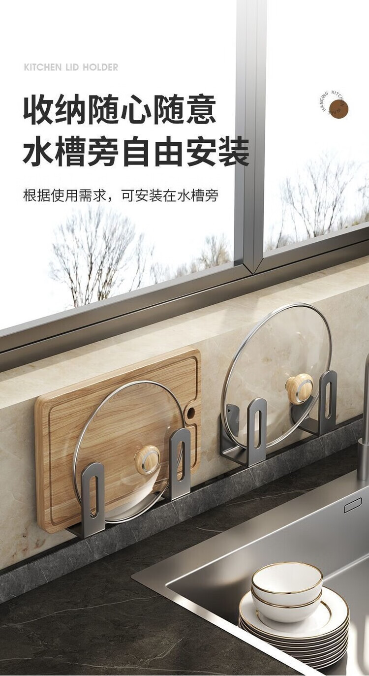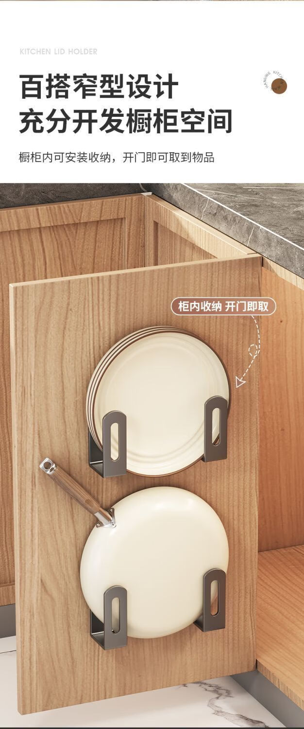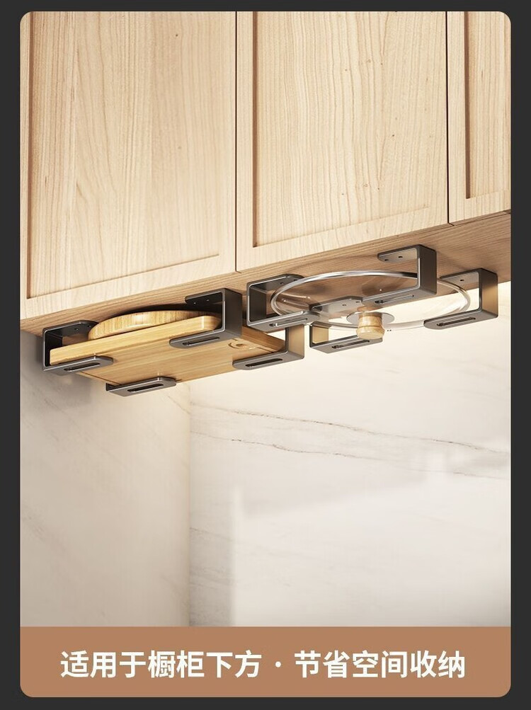 简漾锅盖架厨房置物架壁挂式免打孔放菜板砧板多功能墙上收纳神器挂钩 灰色【超强承重50kg】 2套4个装丨送免钉胶丨加厚12+