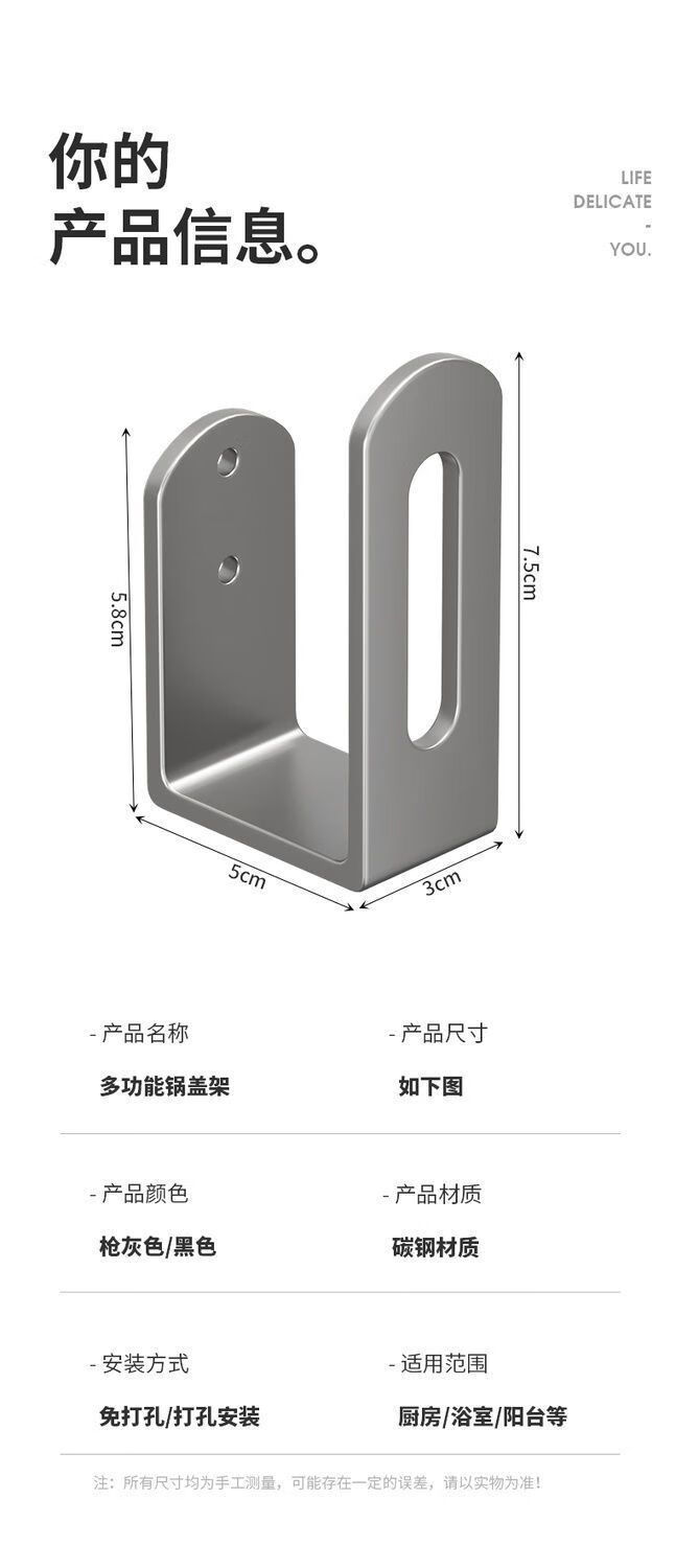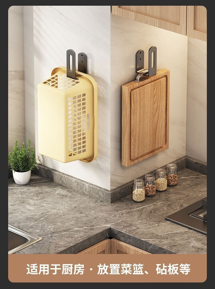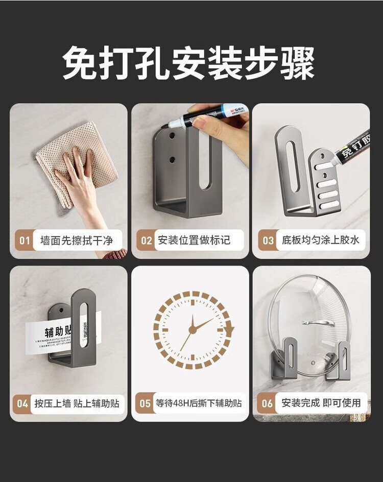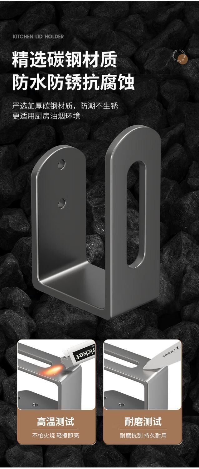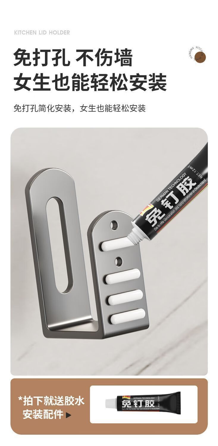 简漾锅盖架厨房置物架壁挂式免打孔放菜板砧板多功能墙上收纳神器挂钩 灰色【超强承重50kg】 2套4个装丨送免钉胶丨加厚12+