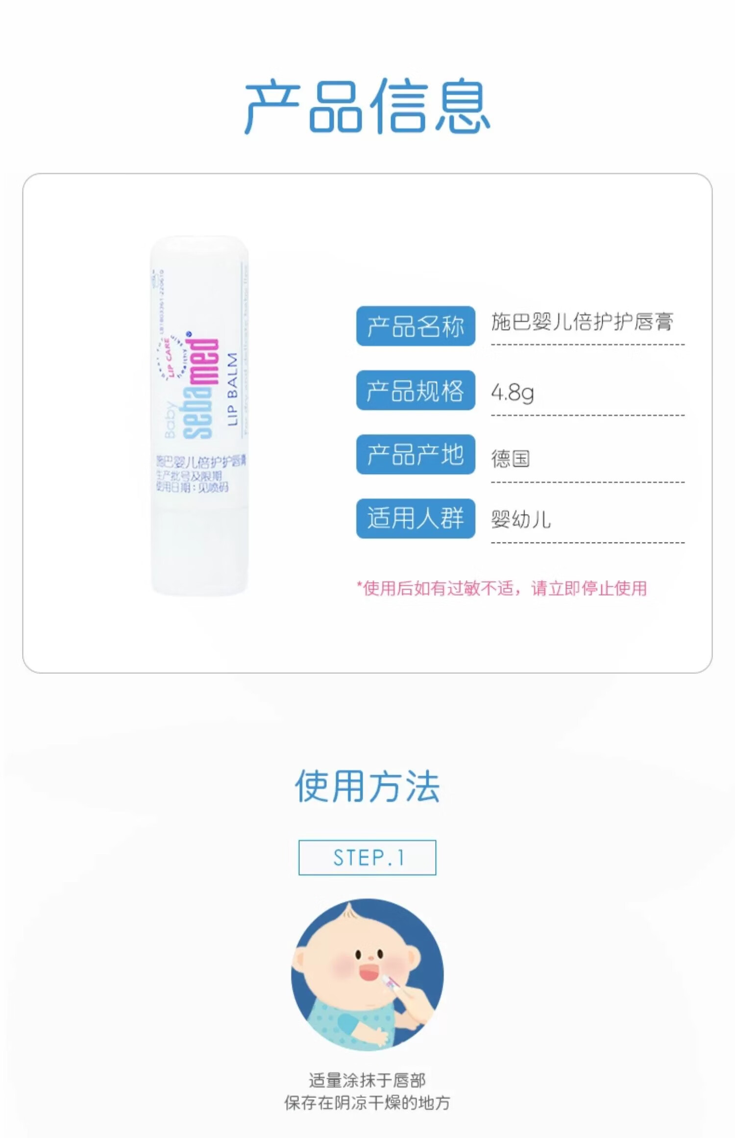施巴儿童润唇膏婴儿倍护护唇膏4.8g【临期清仓】