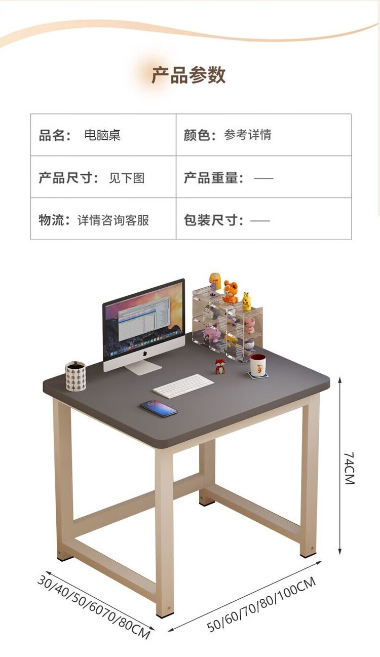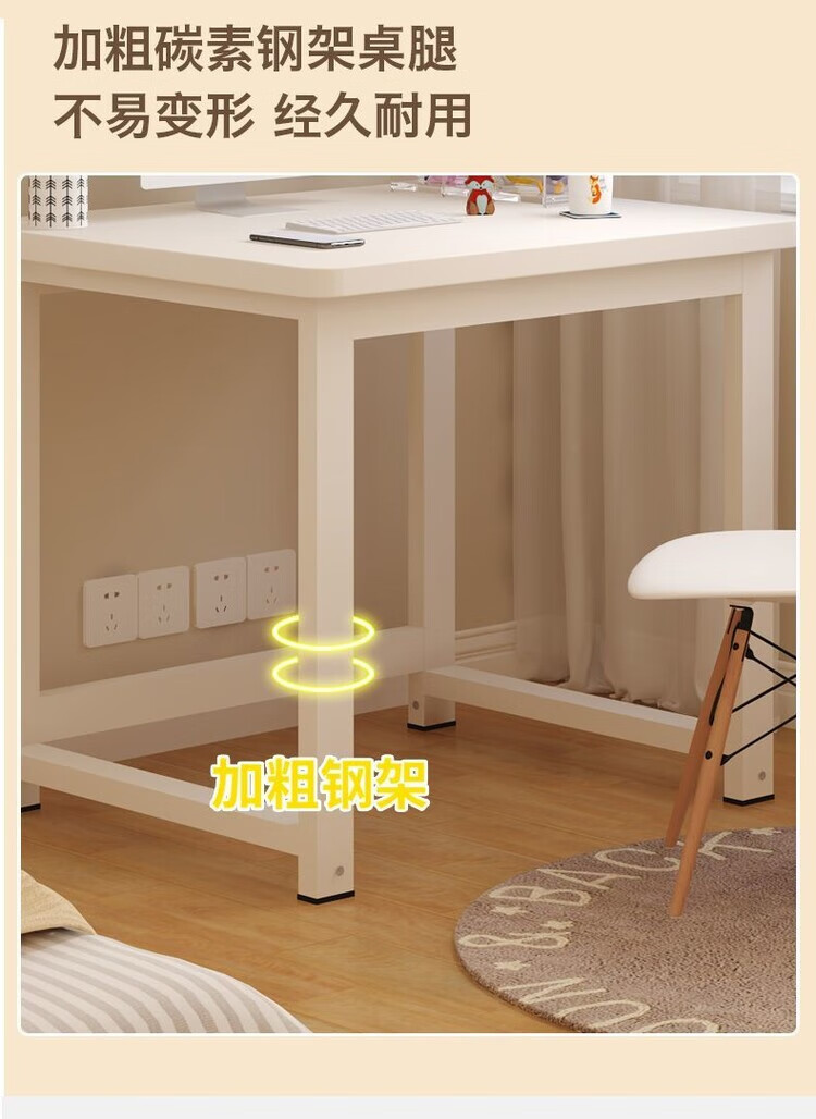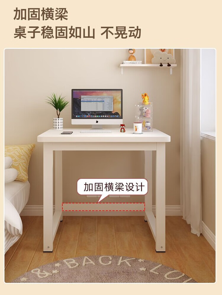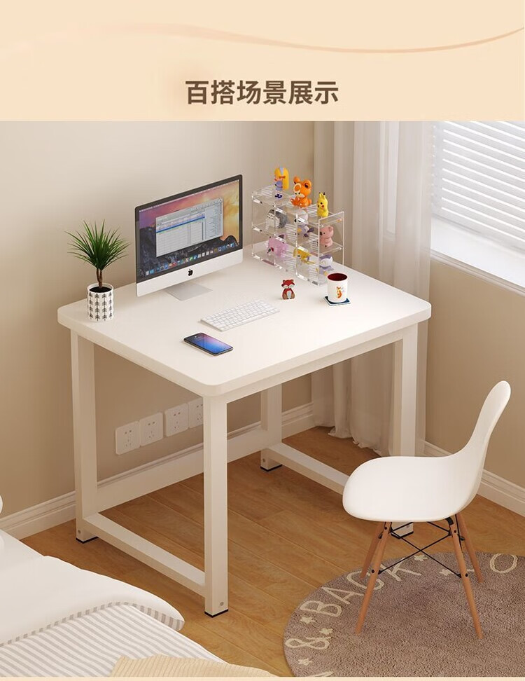 倘然之家方形书桌卧室办公桌简易单人位台式电脑桌家用小户型学习写字桌子 白色 50*40*74【加厚桌面】圆角