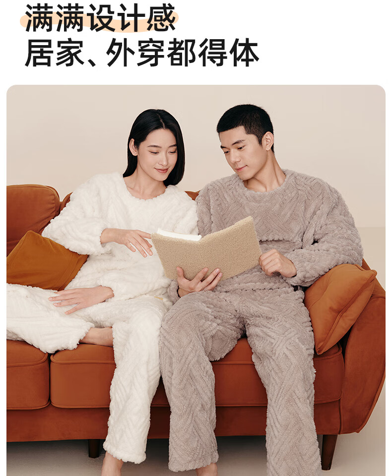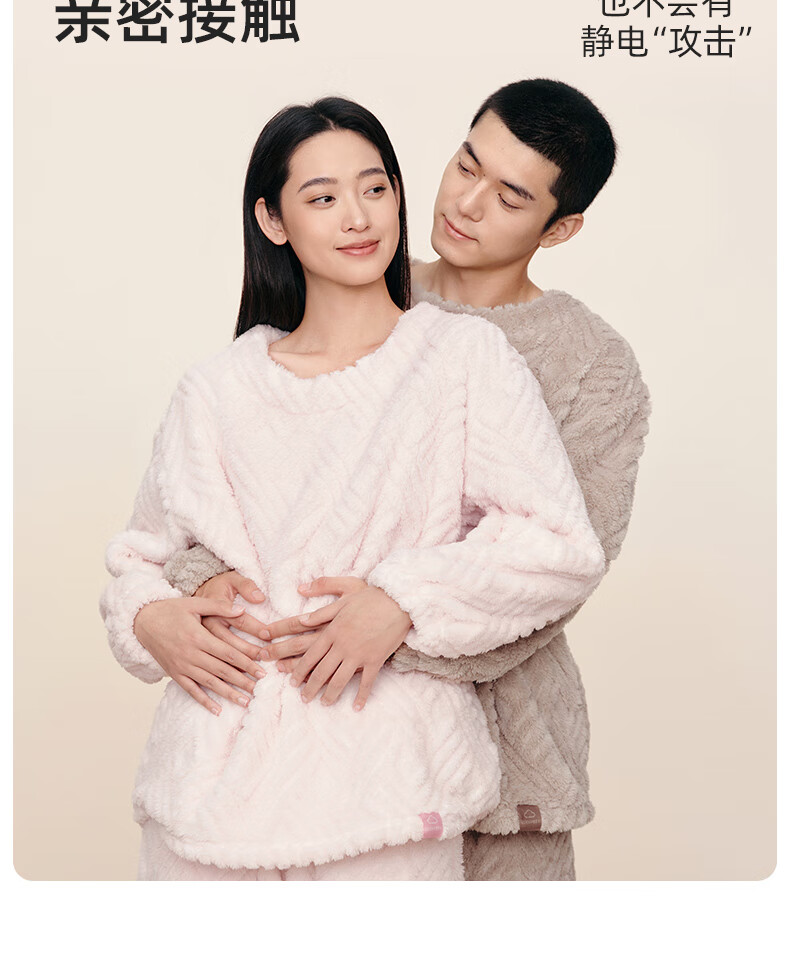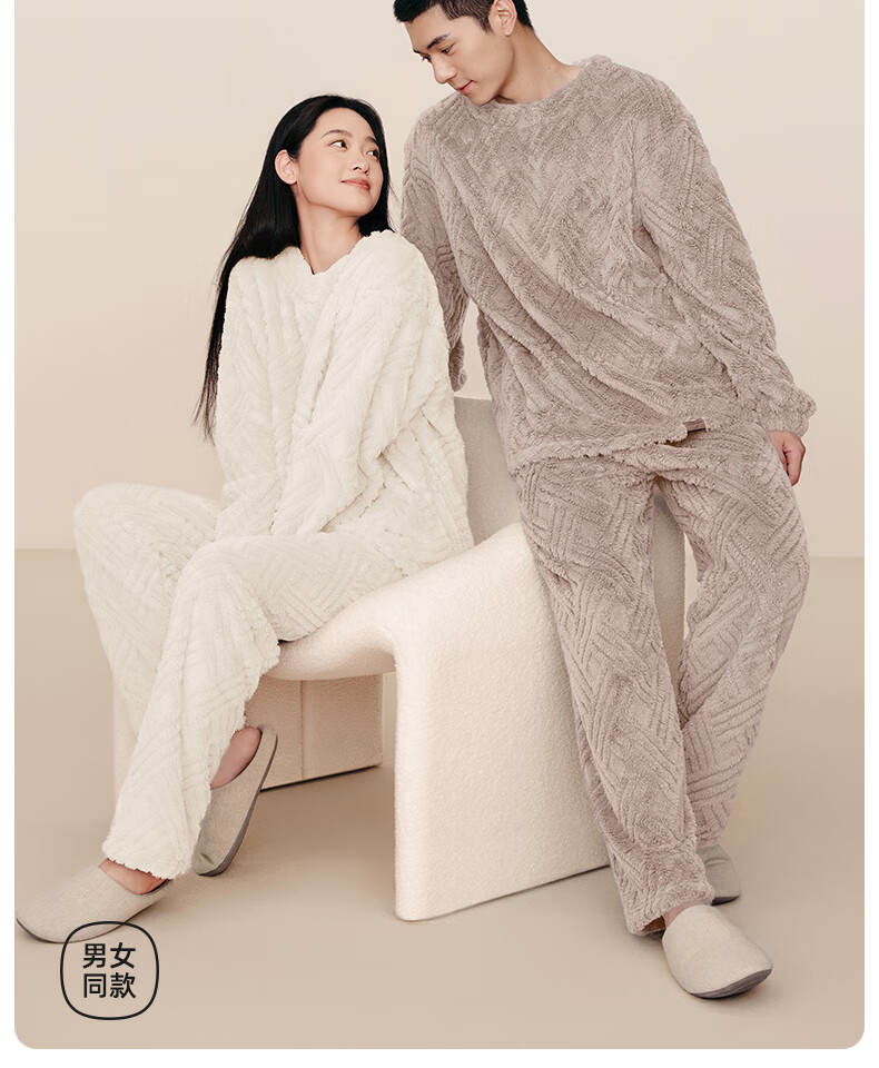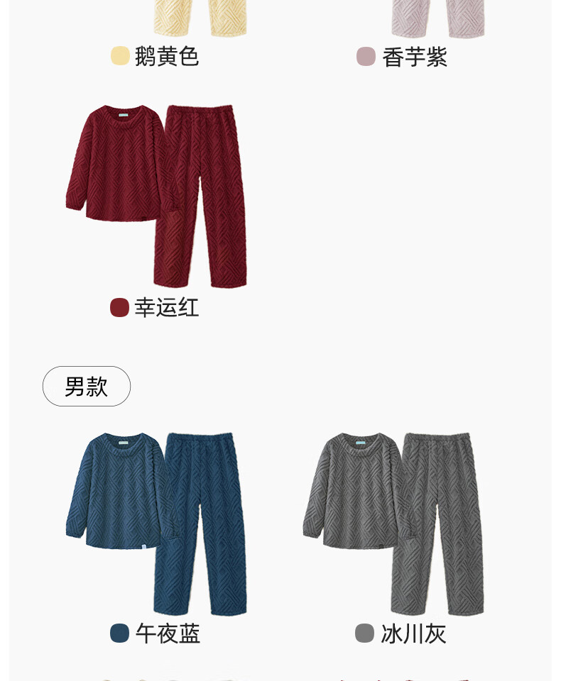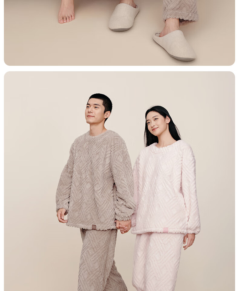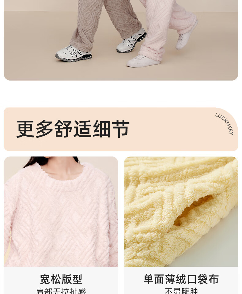 幸棉(LUCKMEEY)麻花绒美拉德家居服套装男女睡衣长毛绒保暖可外穿情侣款圆领套头 女款香芋紫 L (女110-140斤/男120-140斤)