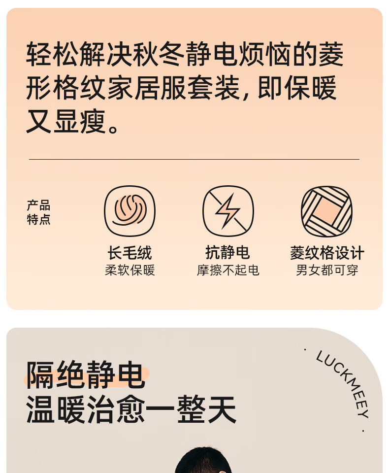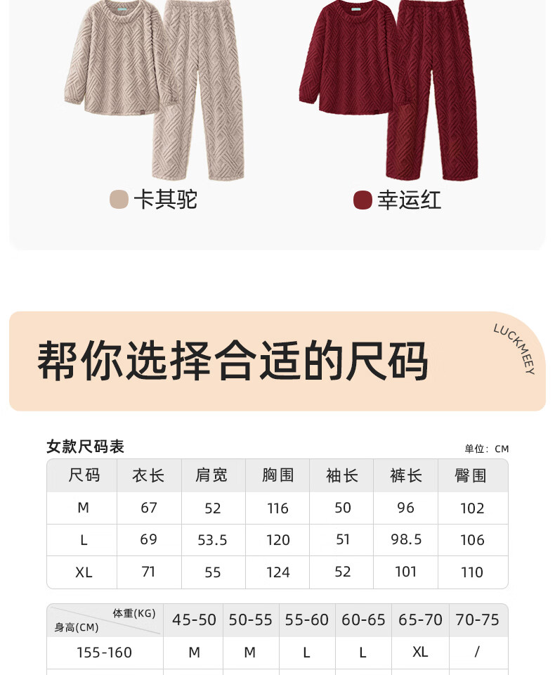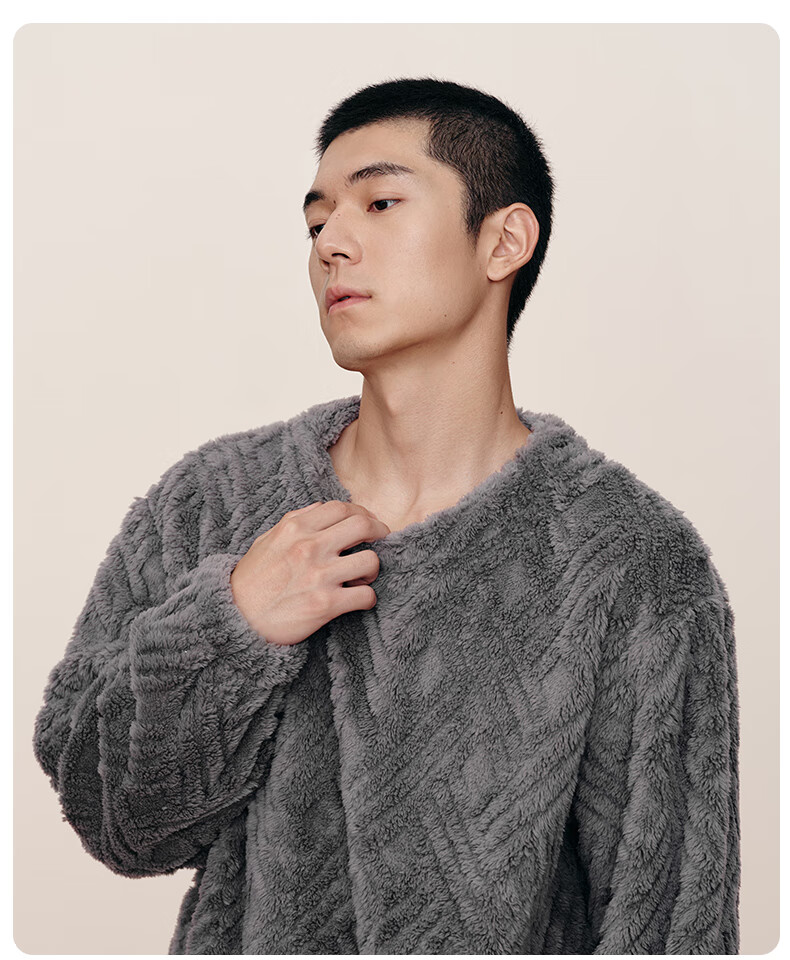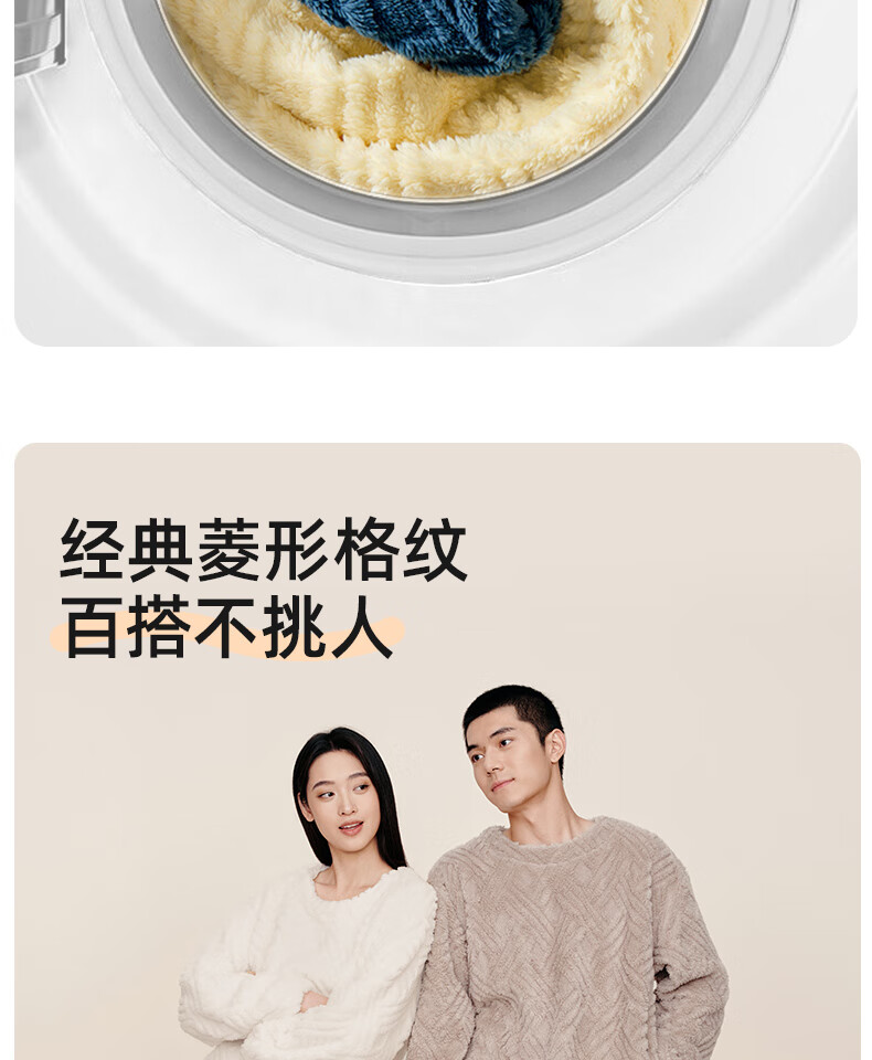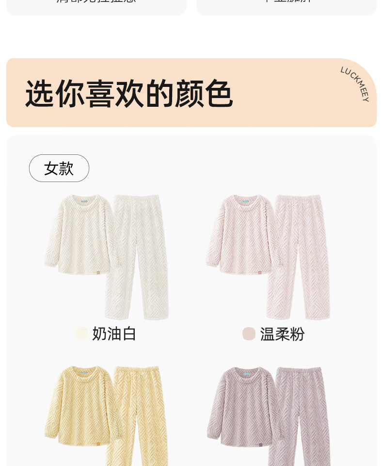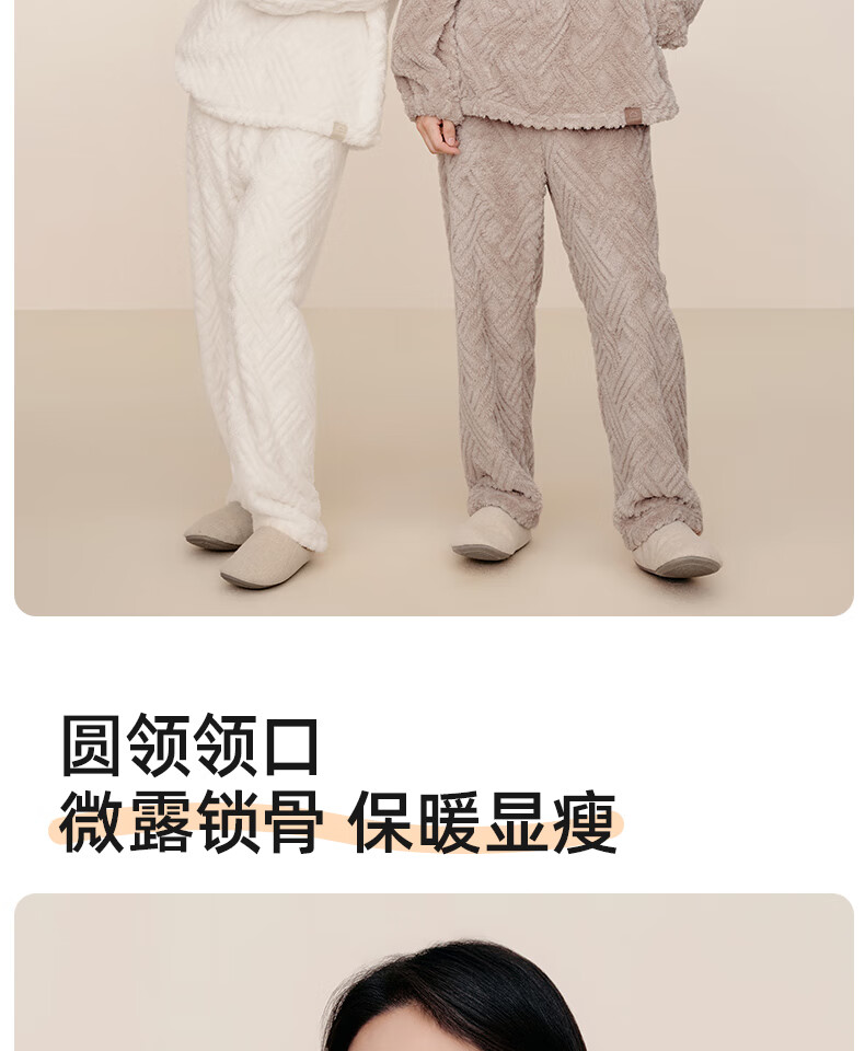 幸棉(LUCKMEEY)麻花绒美拉德家居服套装男女睡衣长毛绒保暖可外穿情侣款圆领套头 女款香芋紫 L (女110-140斤/男120-140斤)