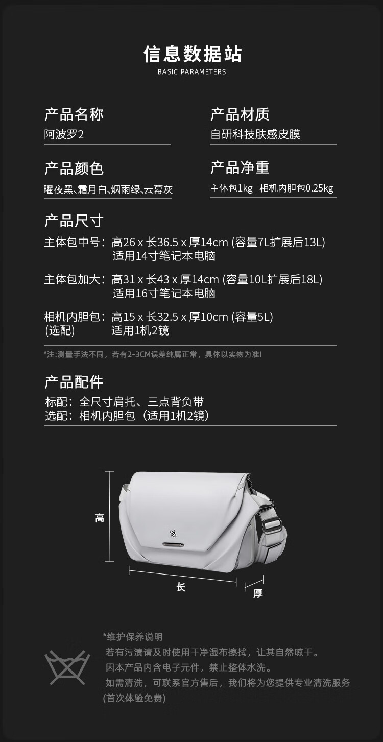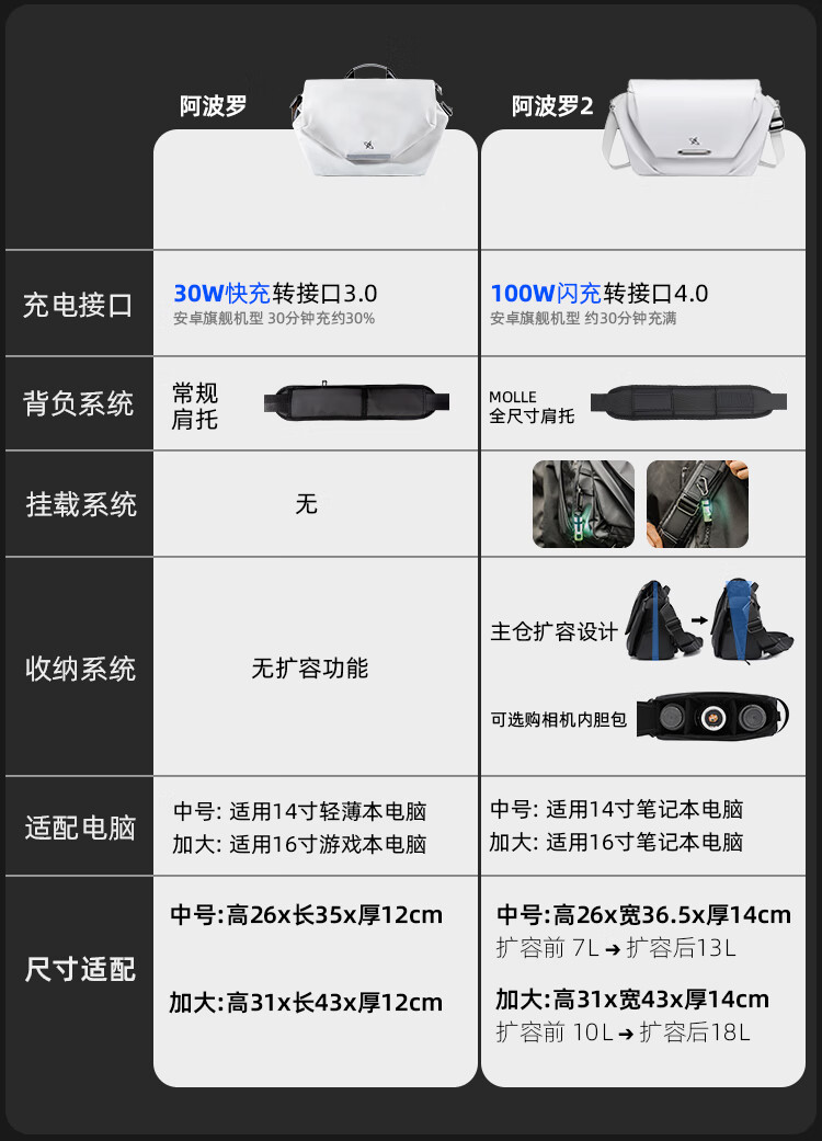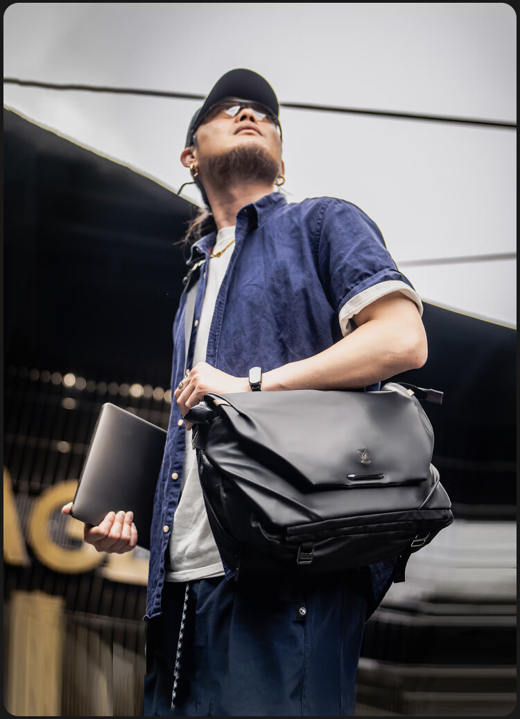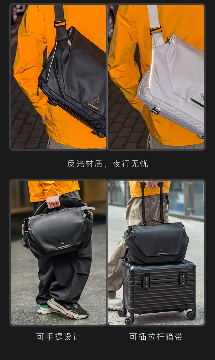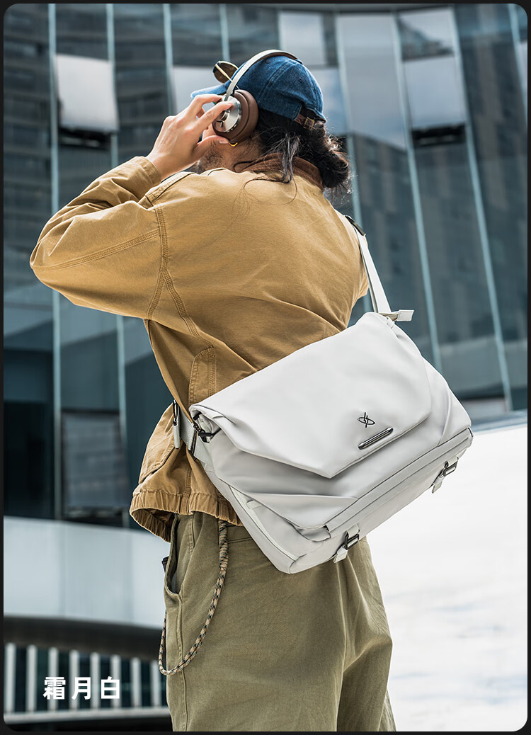 光影行星(GYXX)阿波罗2笔记本电脑包男士通勤单肩斜挎包适用苹果联想拯救者 霜月白/中号 适合14寸电脑