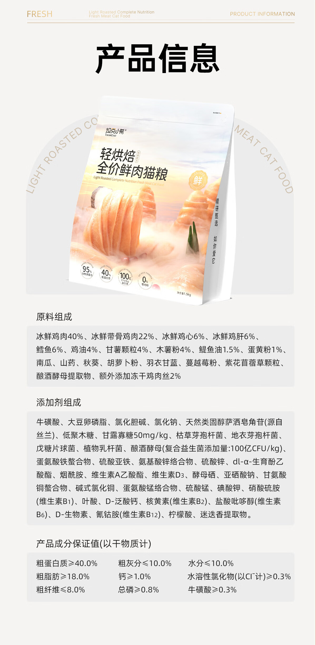坦克小希轻烘焙猫粮全价无谷高蛋白80%鲜鸡肉成猫幼猫通用猫粮6kg
