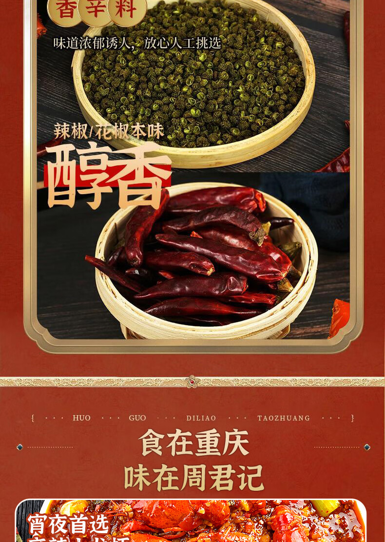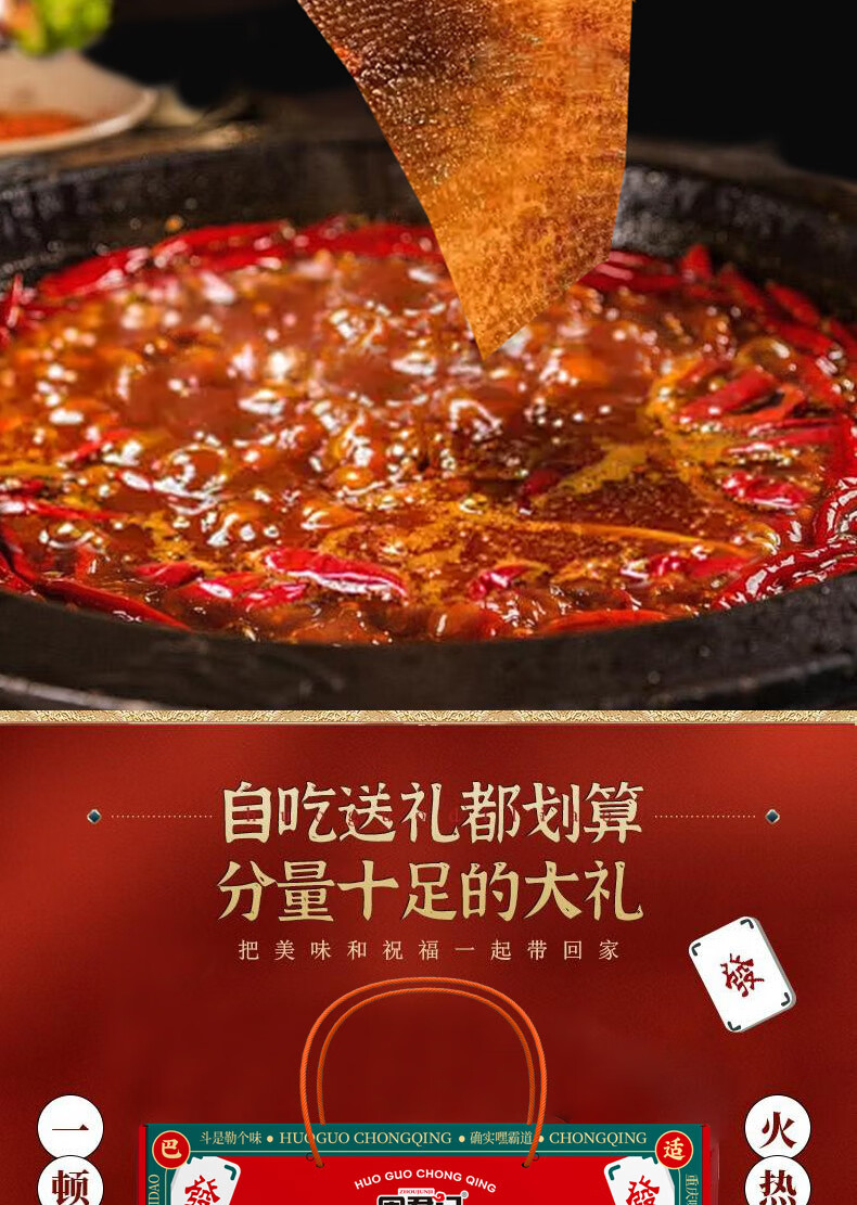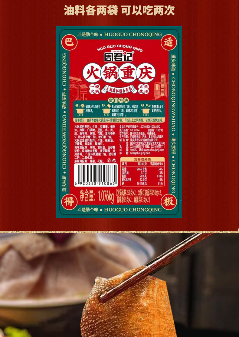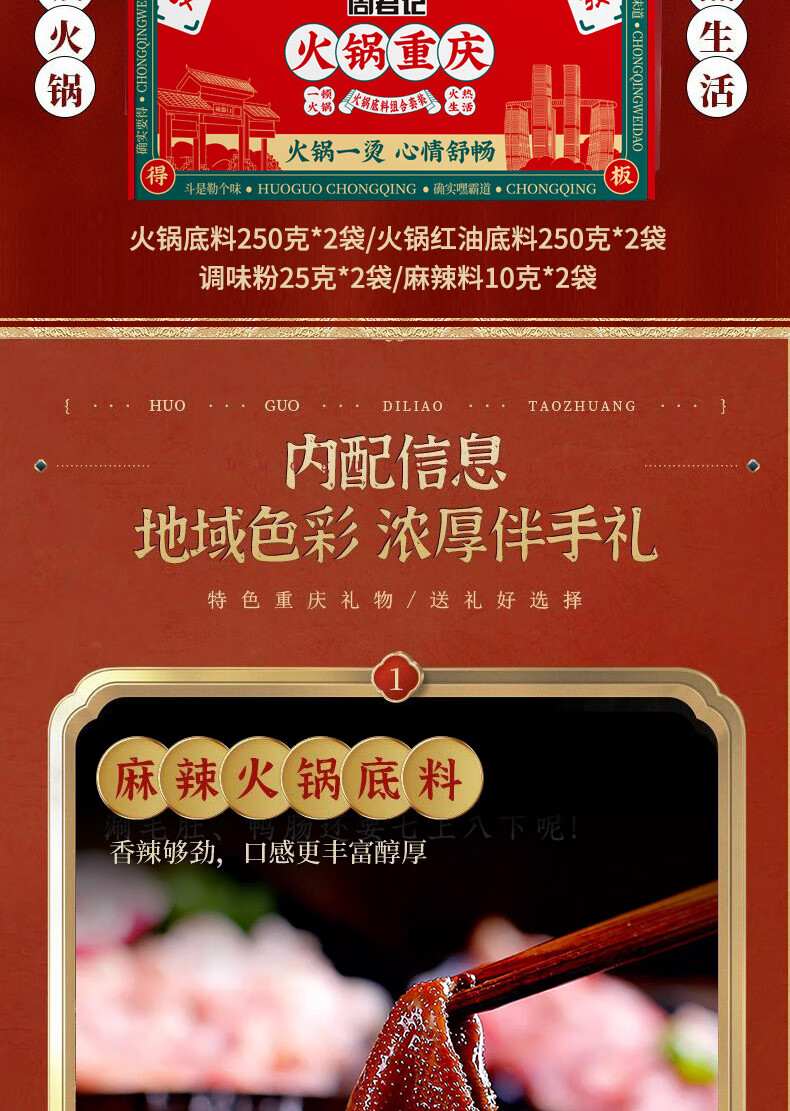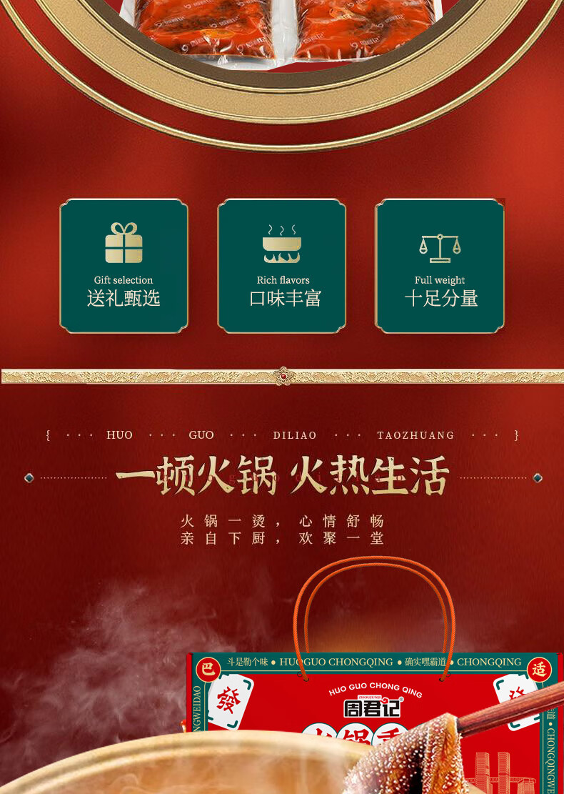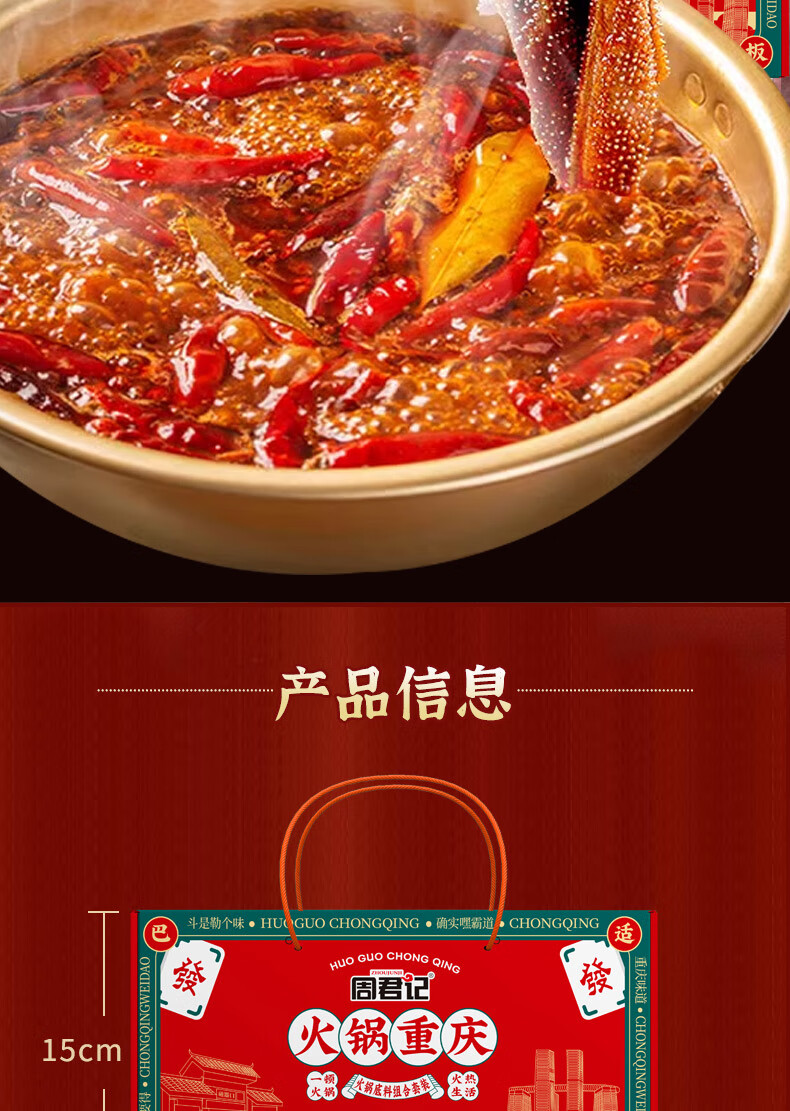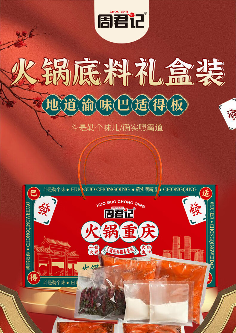 周君记牛油火锅底料礼盒套装1.076kg重庆特产送礼干锅麻辣烫串串香底料
