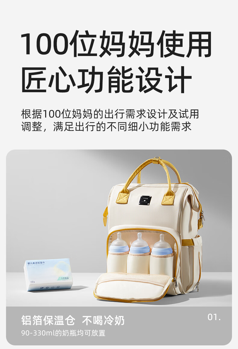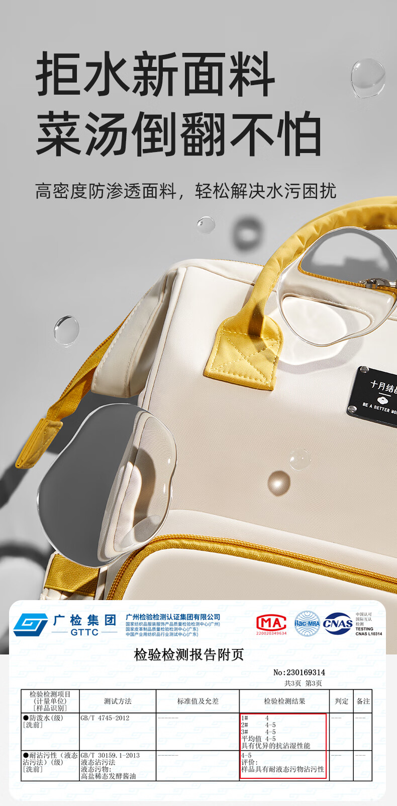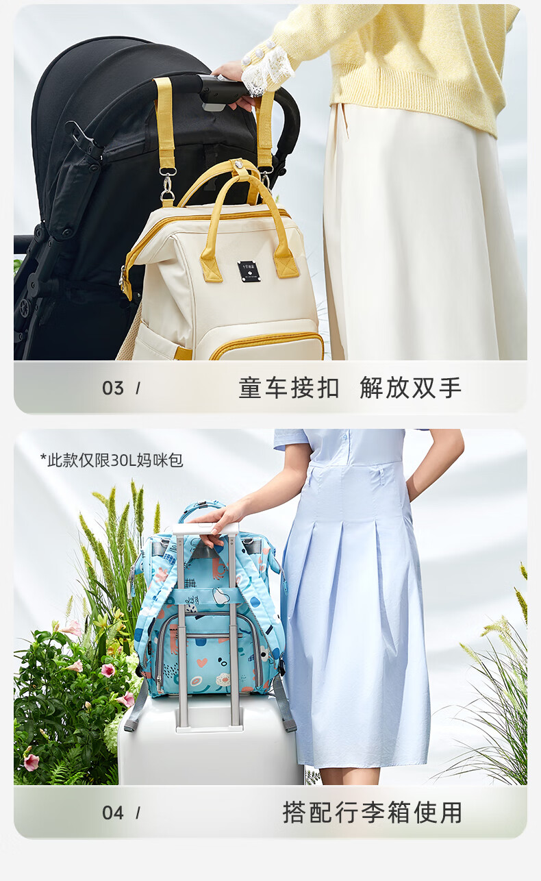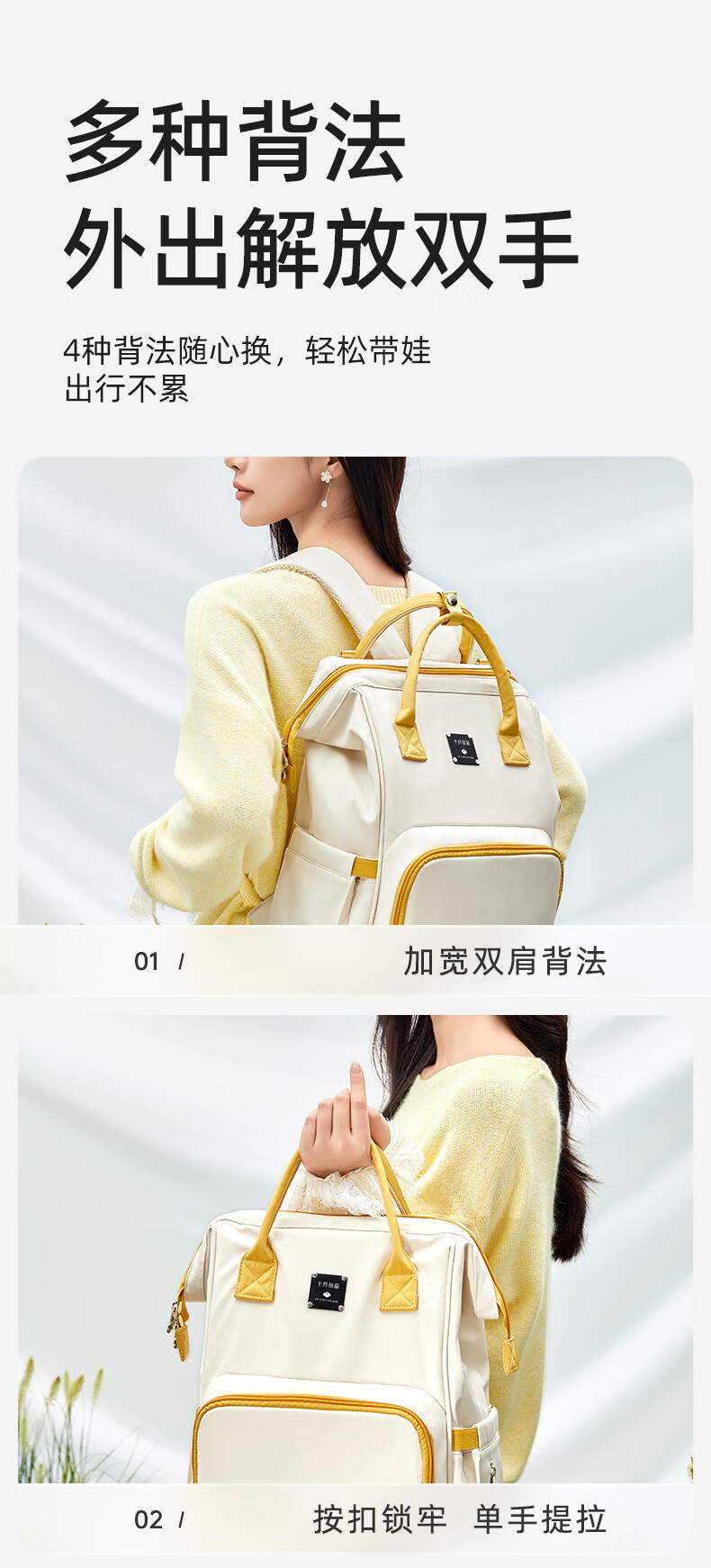 十月结晶妈咪包上班旅行双肩包多功能大容量母婴包时尚手提背包30L 缃叶黄