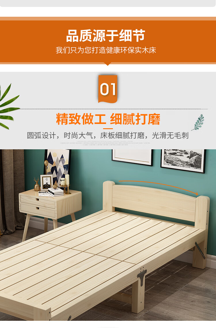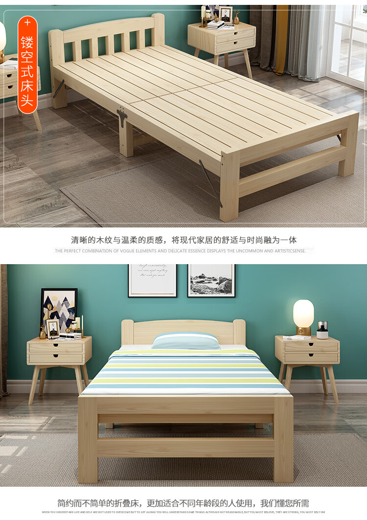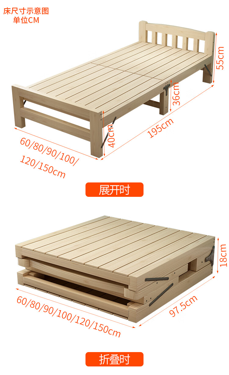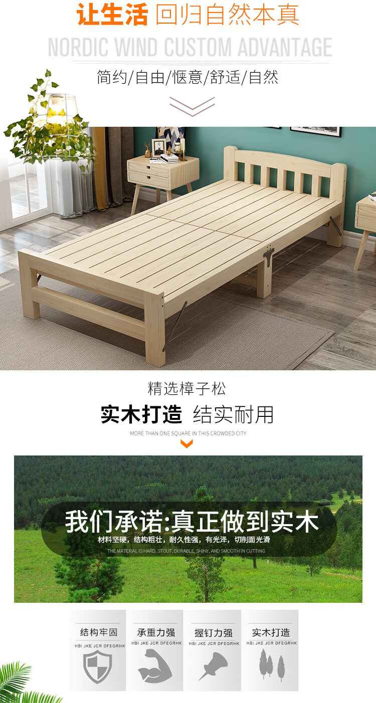 迈途森折叠床单人折叠床双人午睡床午休床单人床简易床实木床1.2米床 90宽实木折叠床