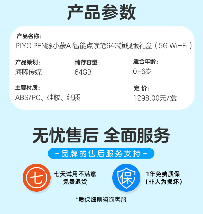 PIYO PEN豚小蒙AI智能点读笔5GWiFi版64G旗舰版早教机男孩女孩玩具