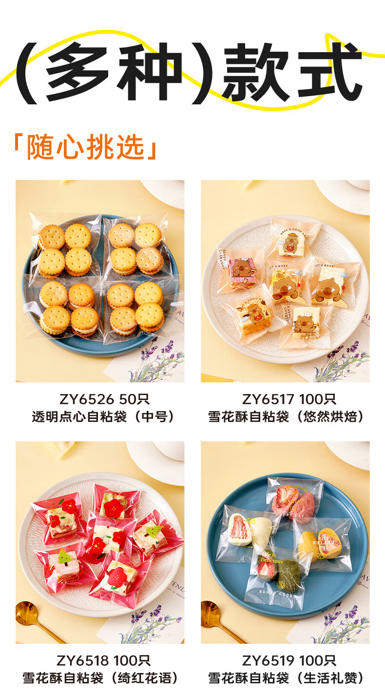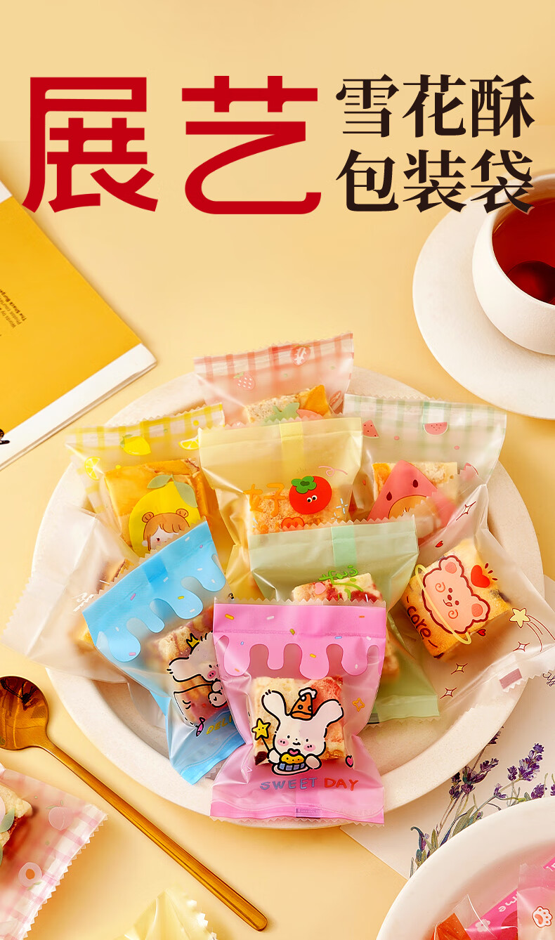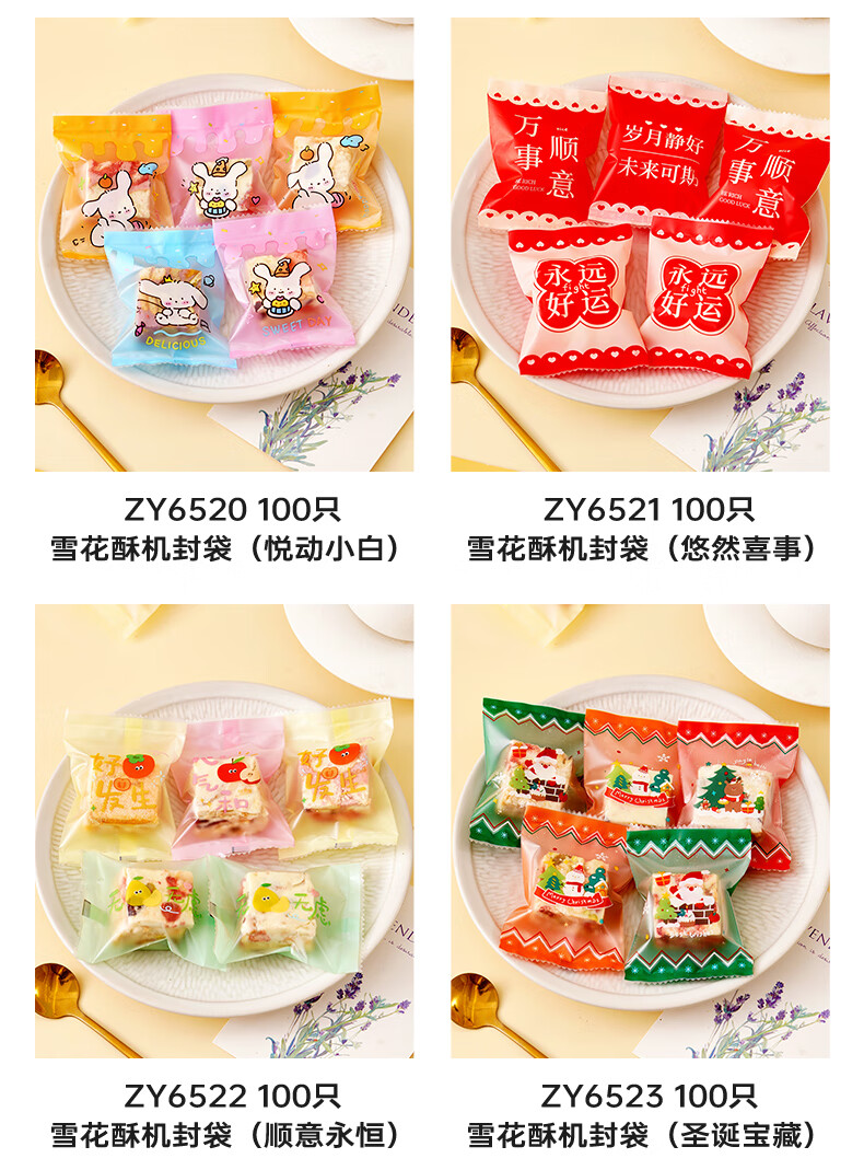 展艺雪花酥机封袋100只 点心糕点曲奇饼干奶枣烘焙包装 顺意永恒