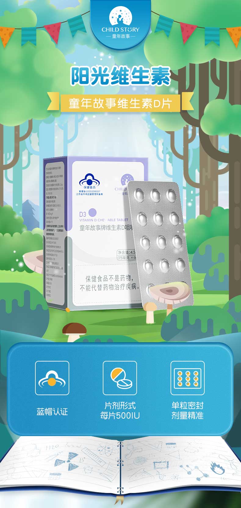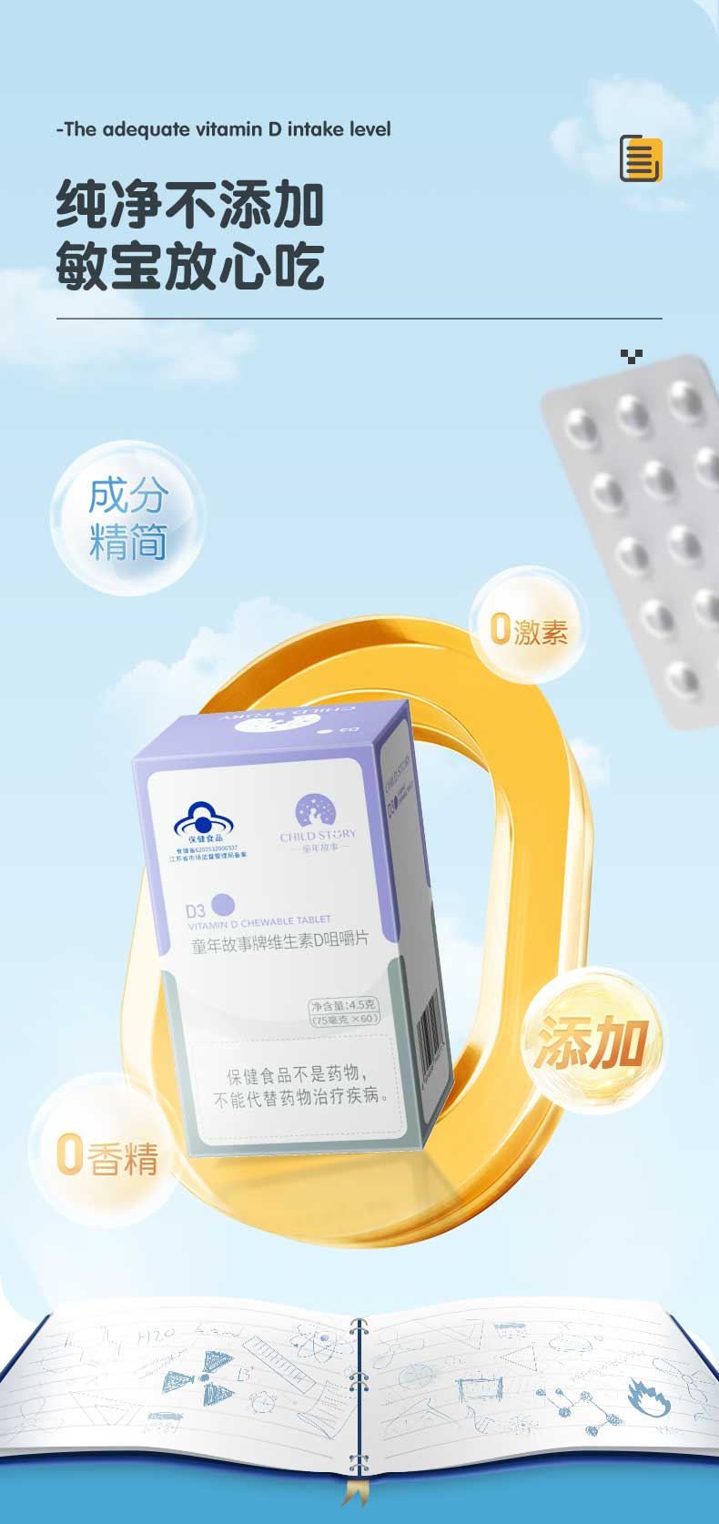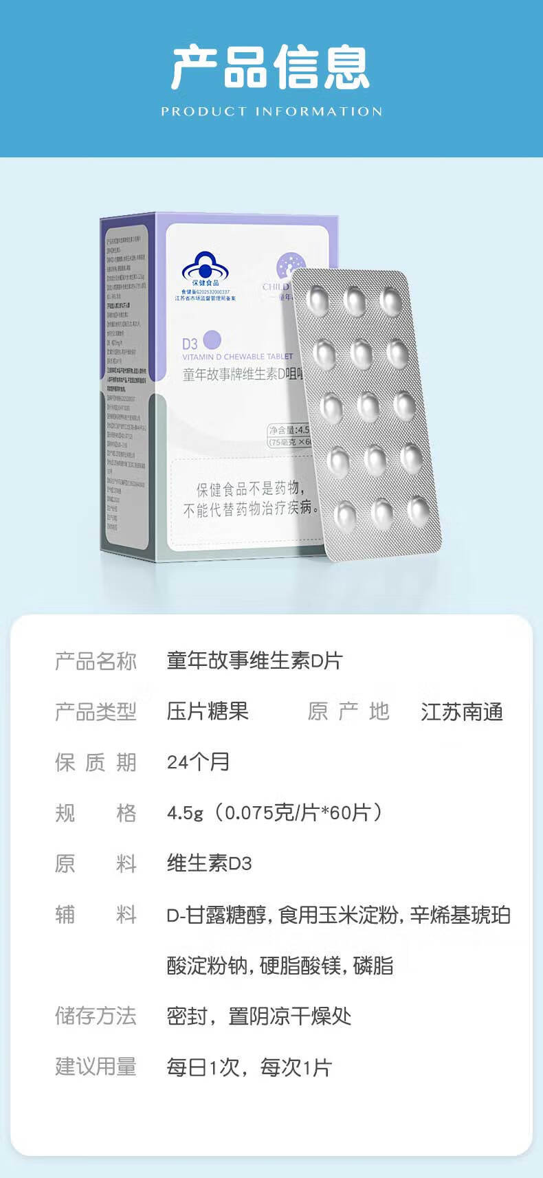 童年故事Child Story维生素D3咀嚼片儿童成人 补充维生素vd3片剂高含量 60片