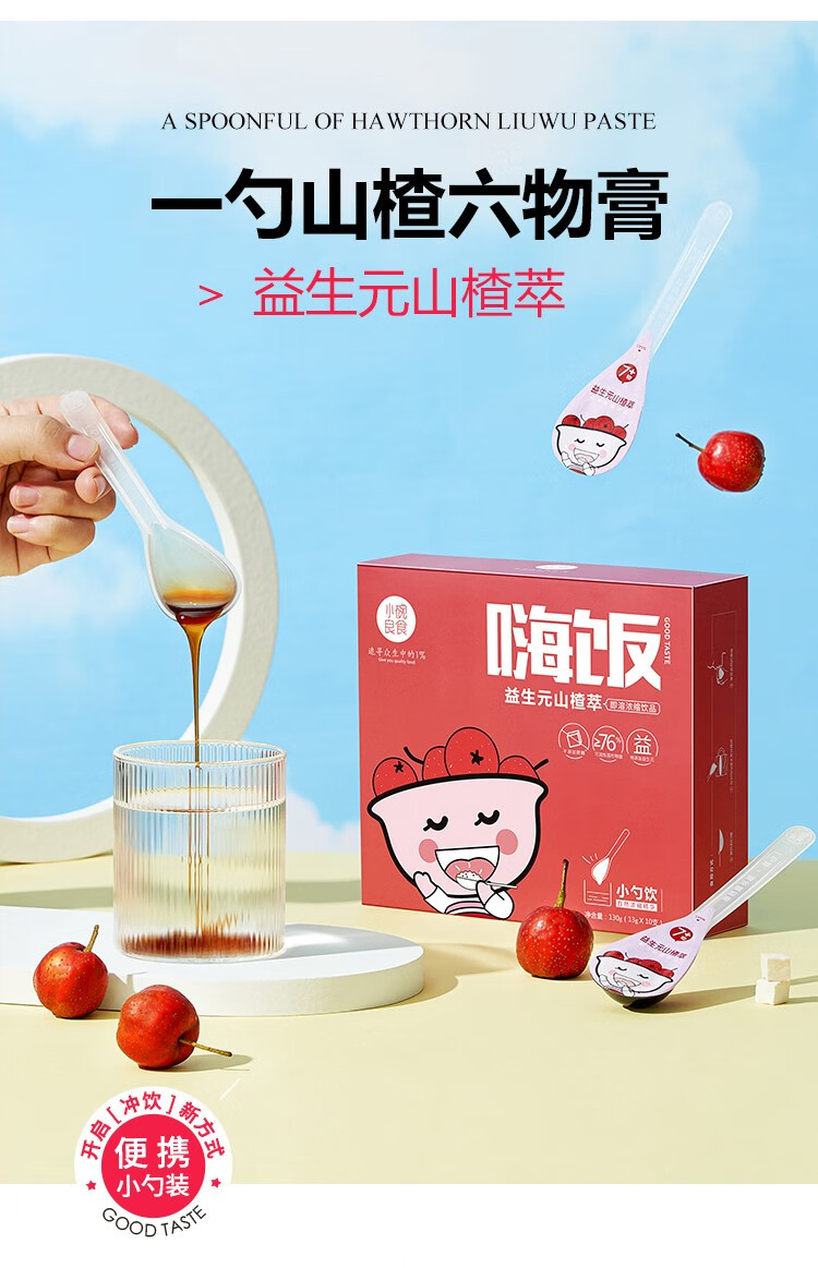 小碗良食山楂六物膏益生元山楂萃鸡内金儿童喝水积食厌食冲饮独立包装勺装 一盒130g(10勺)