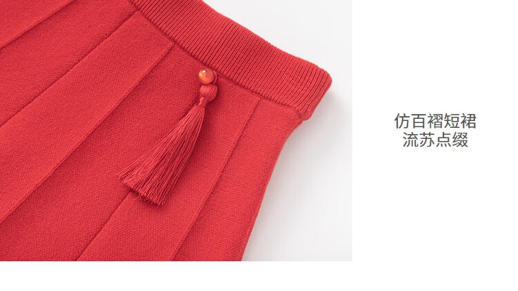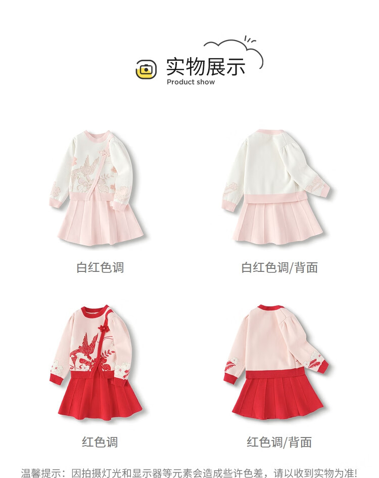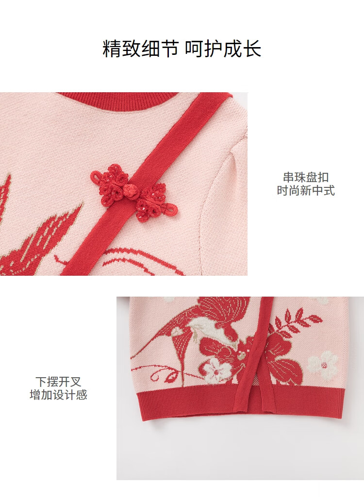 巴拉巴拉儿童套装女童秋冬装红色新中式两件套拜年服提花