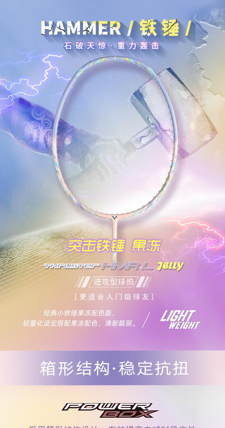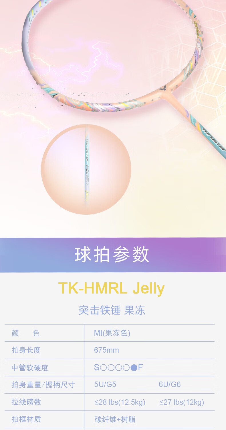 威克多(VICTOR)胜利羽毛球拍铁锤雅思全碳素龙单拍TK-HMRL果冻色5U已穿线24磅