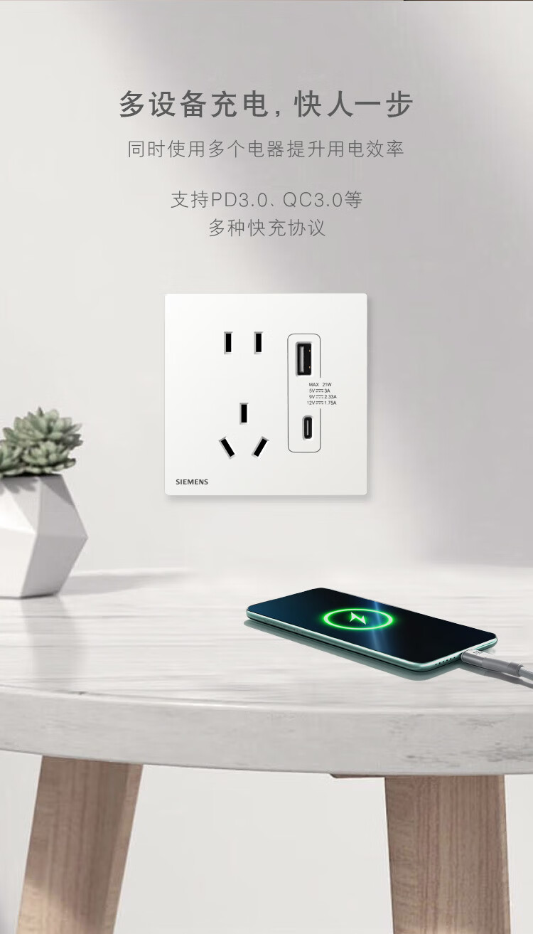 西门子(SIEMENS)开关插座面板86型墙壁电源 16A大功率开关蕴逸金色开关 一开单控 16A