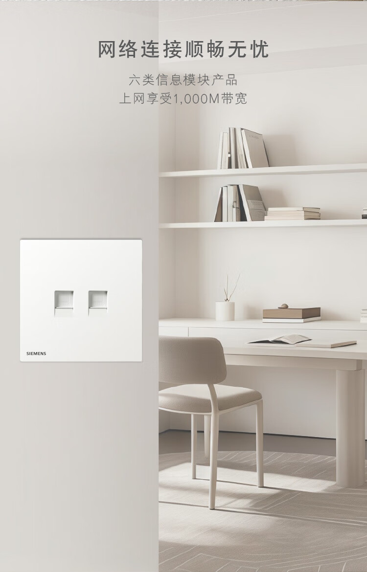 施耐德电气 单联六类电脑插座 86型网络网线信息插座面板 皓呈系列 奶油白色