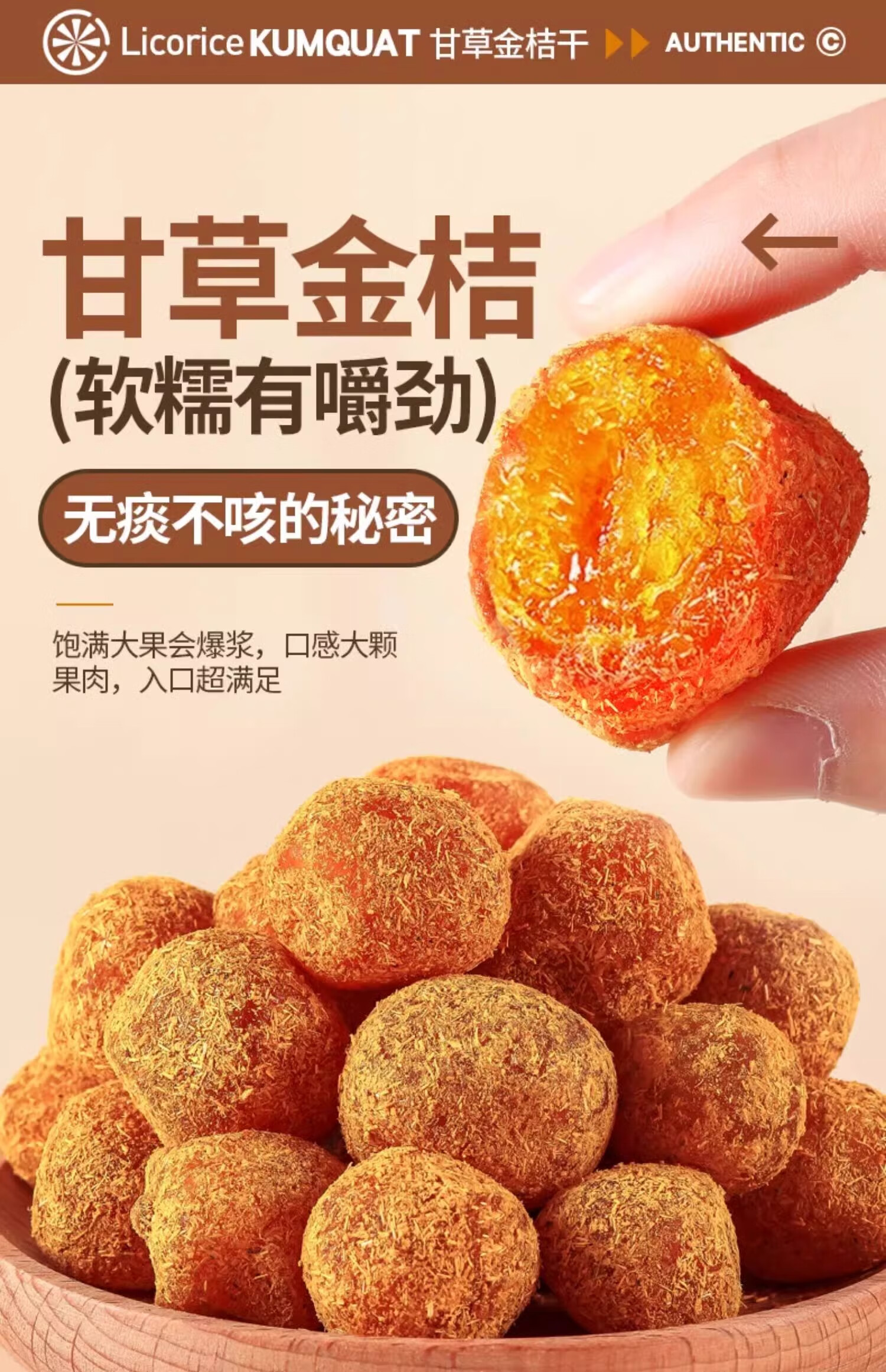 呈雪醇甘草金桔干化痰止咳广西广东特产橘子干金桔果脯金橘干官方旗舰店 【久咳不止】甘草金桔干500g*1罐