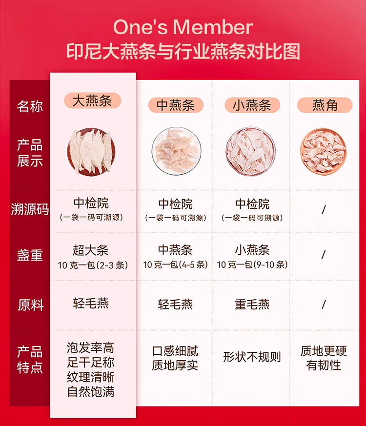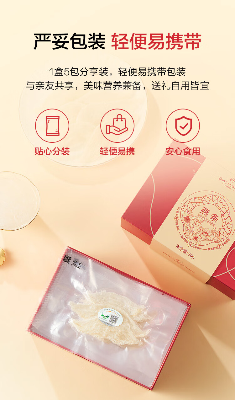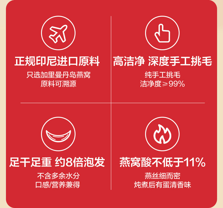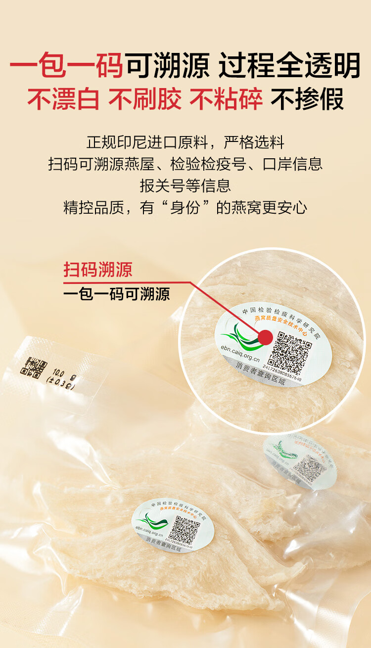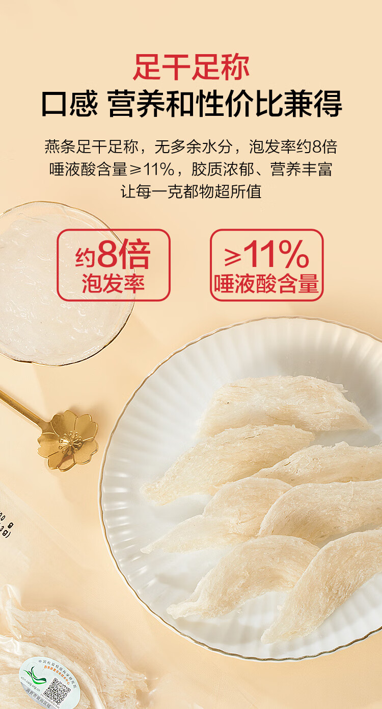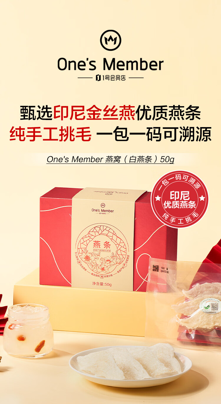 1号会员店50g印尼大燕条干燕窝盏可溯源高洁净送礼送父母爸妈长辈
