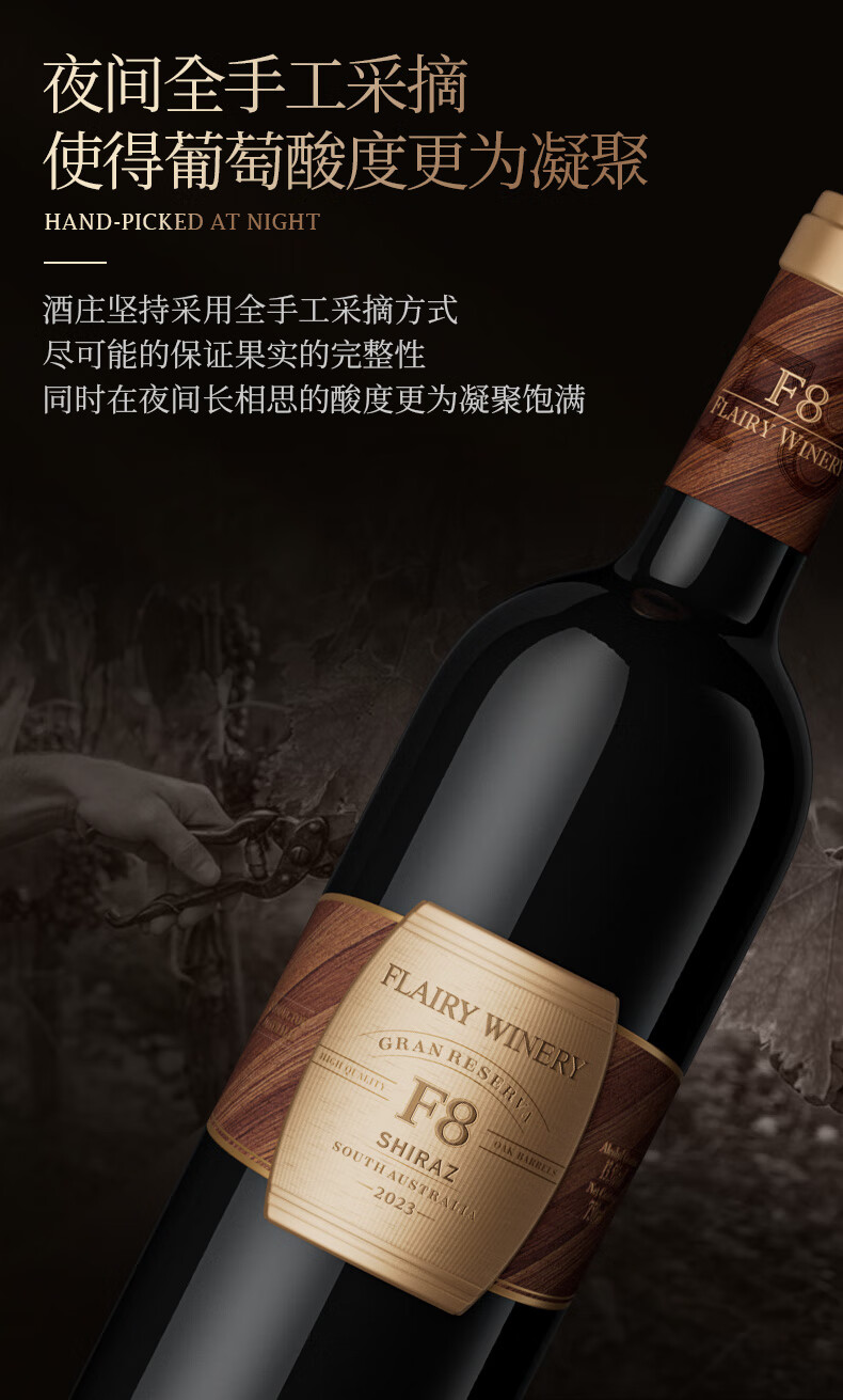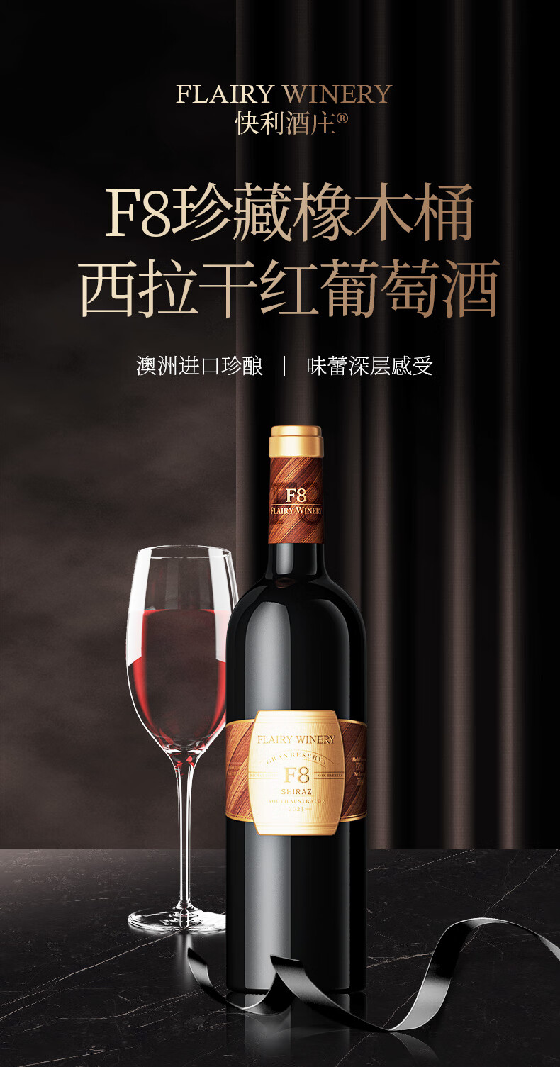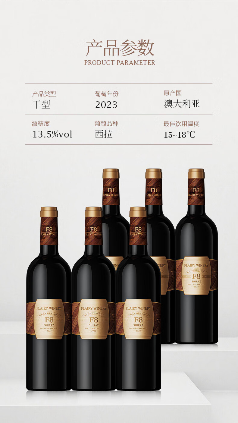 快利酒庄F8珍藏橡木桶西拉干红葡萄酒13.5度 持有机产品认证 澳洲原装进口 快利酒庄F8珍藏橡木桶*6