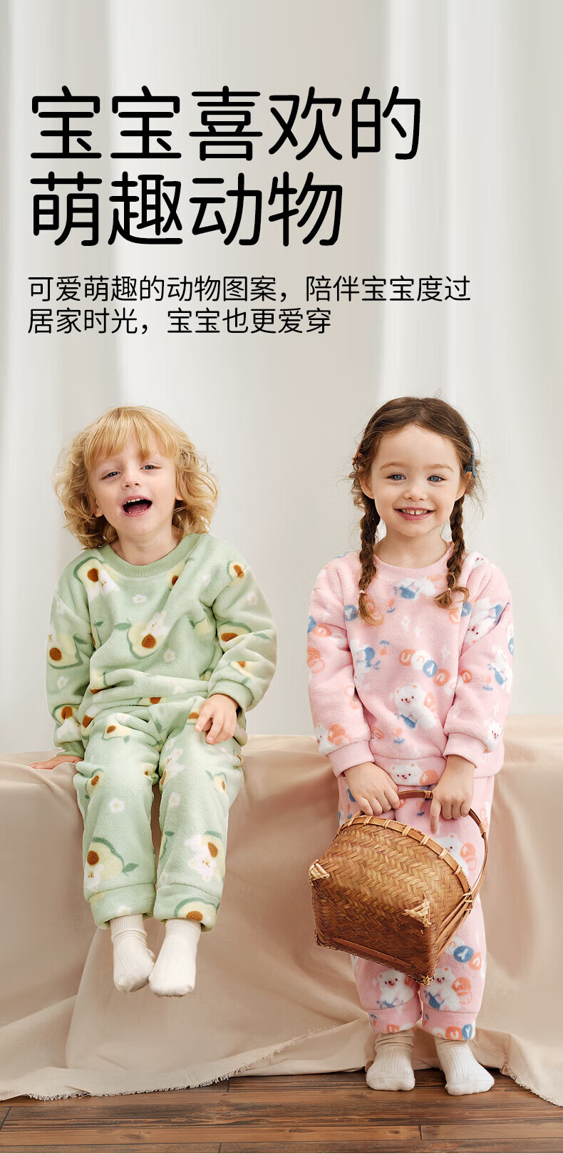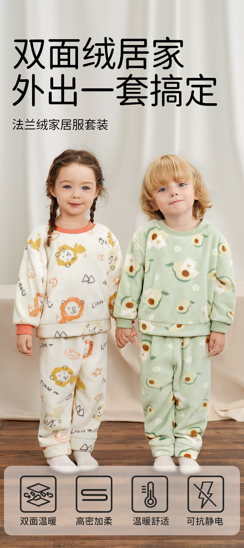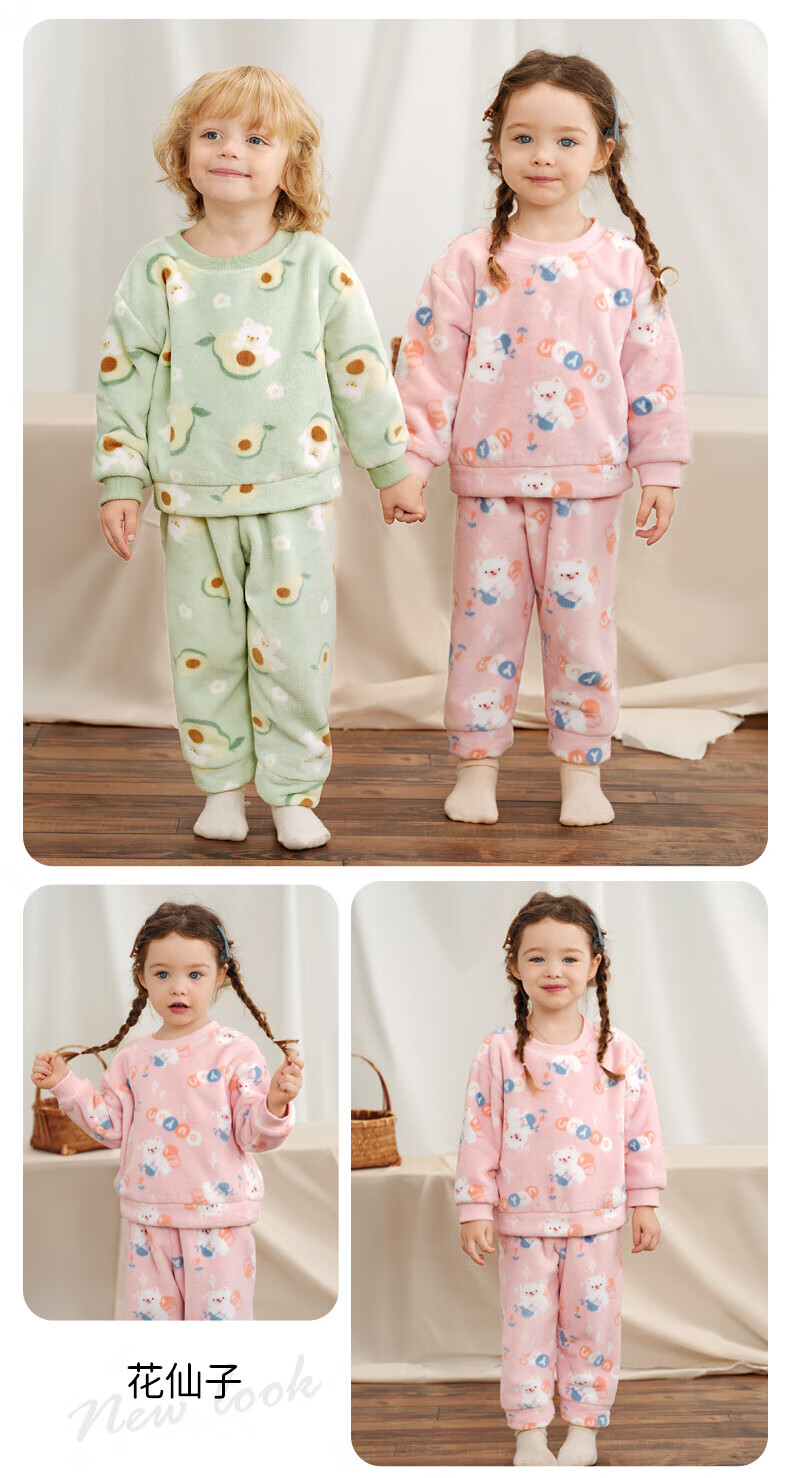欧孕(OUYUN)女童睡衣家居服套装秋冬季新款宝宝法兰绒保暖外穿两件套 叮当羊 【A类标准 抗静电】 100cm (建议身高100cm-110cm)