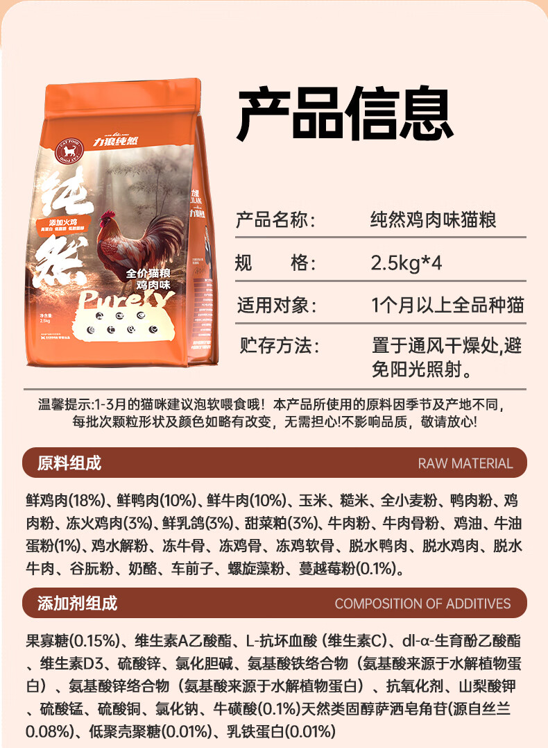 力狼(LILANG)猫粮 纯然火鸡幼猫成猫全价通用型美毛护肠鲜肉天然粮10kg