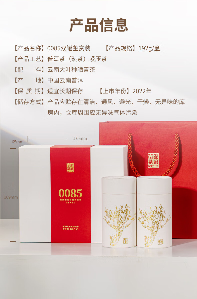 澜沧古茶叶普洱茶0085景迈云南熟普192g 2022年小饼茶礼盒装送礼