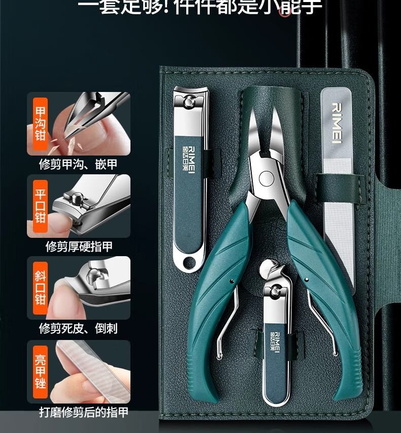 金达日美指甲刀套装甲沟炎专用高档指甲剪全套家用斜口鹰嘴钳修脚工具 (平口+斜口)指甲钳+鹰嘴钳