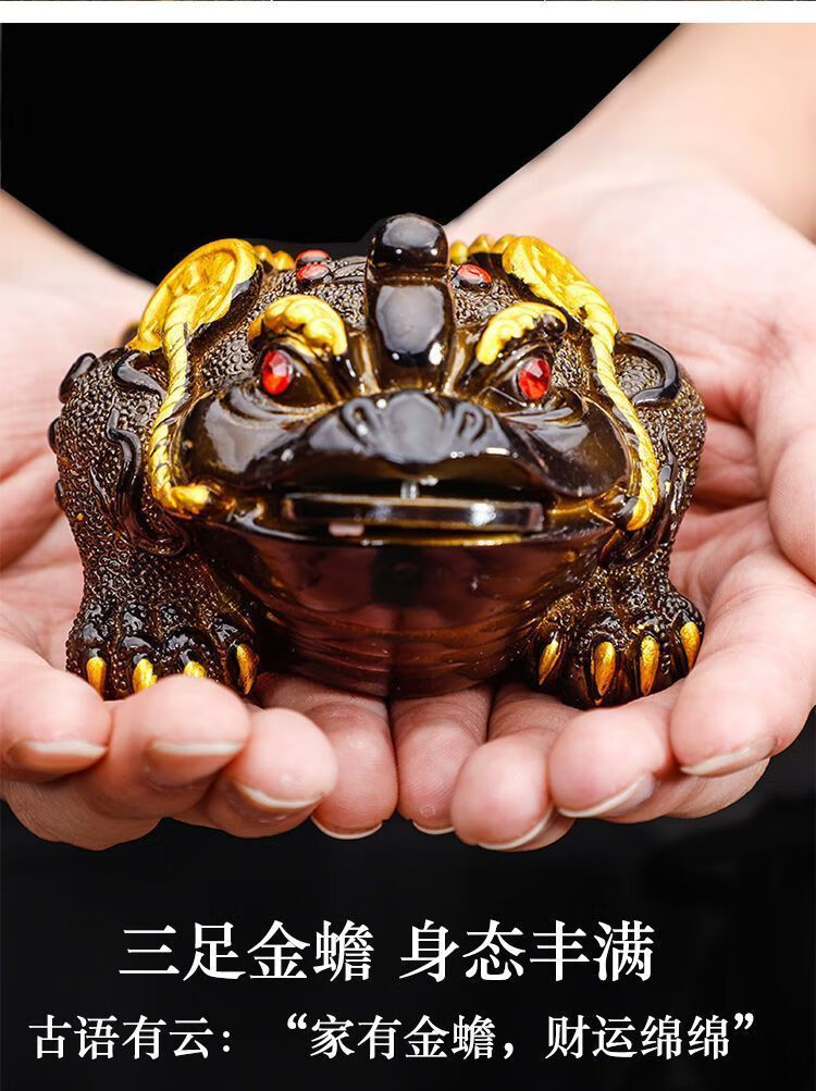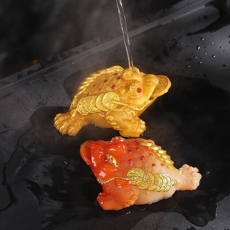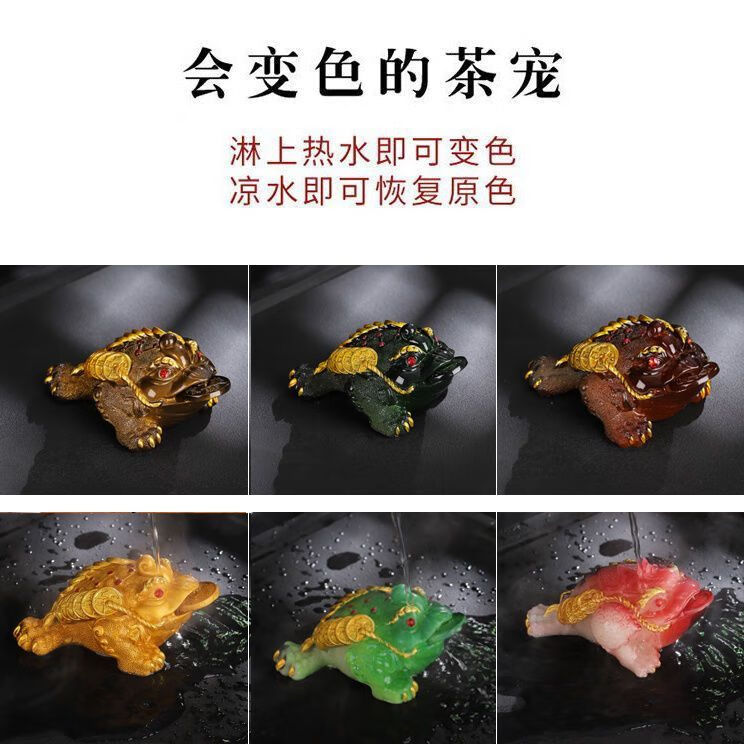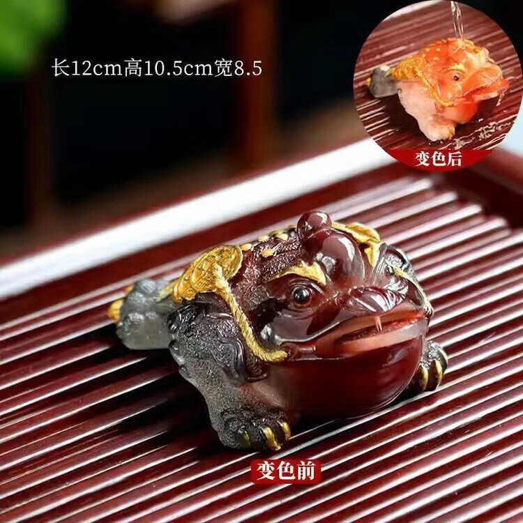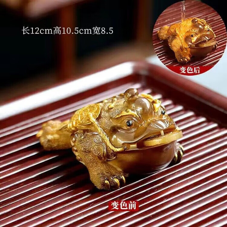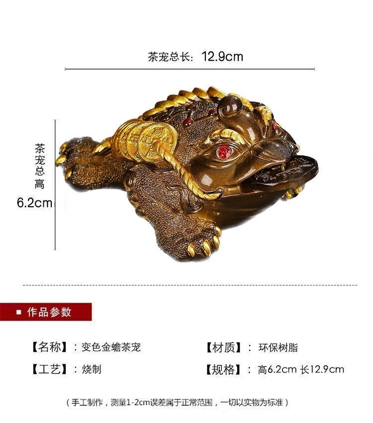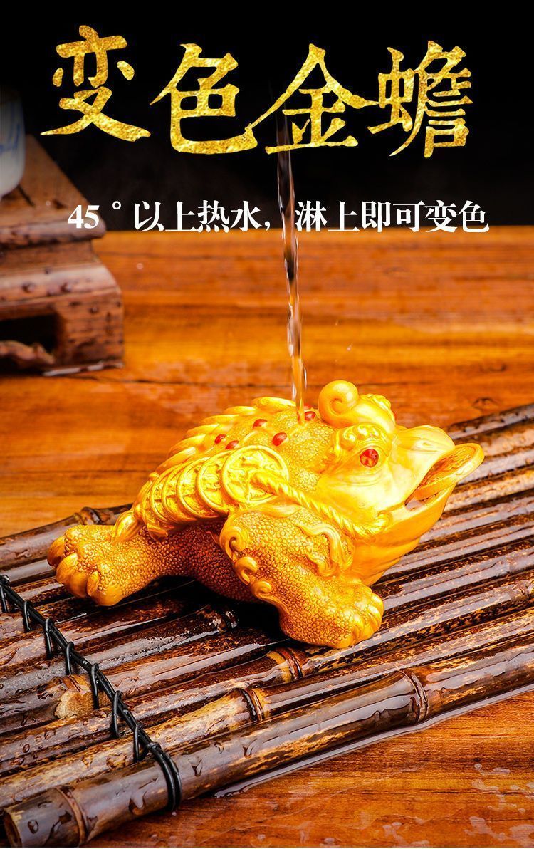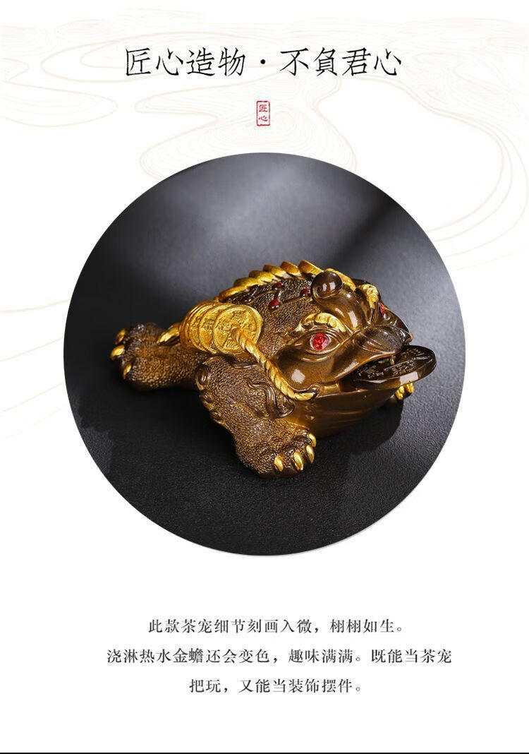简漾茶宠摆件可养招财变色金蟾茶具配件创意功夫茶具茶玩貔貅变色茶宠 大号-变色招财金蟾【金色】送福包