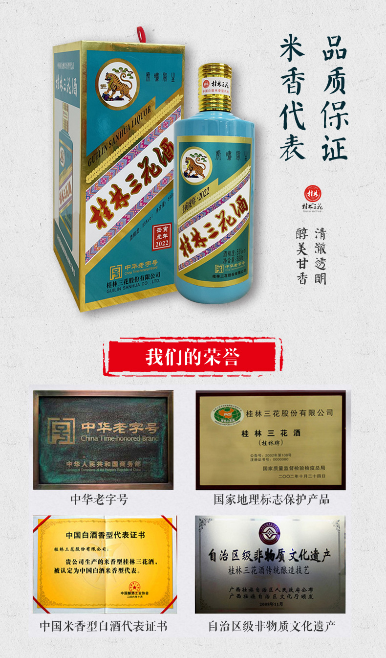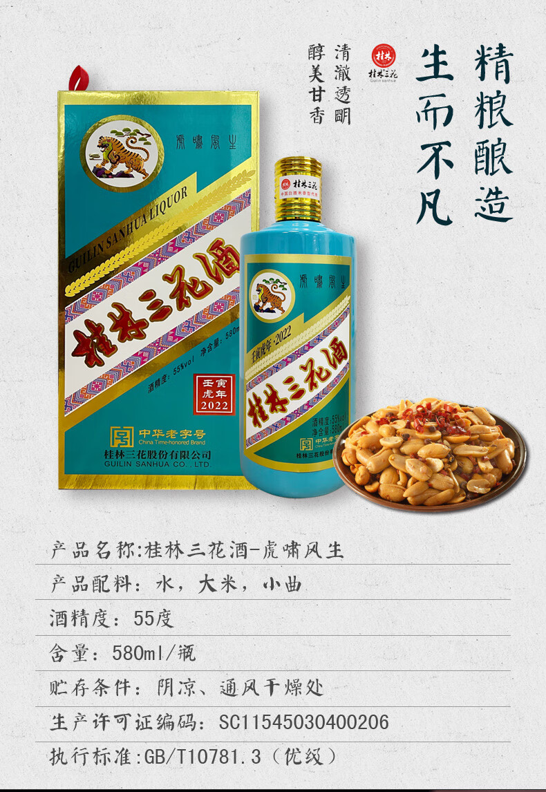 桂林三花酒 虎年生肖酒 米香型白酒 55度 580ml 单瓶装 送礼