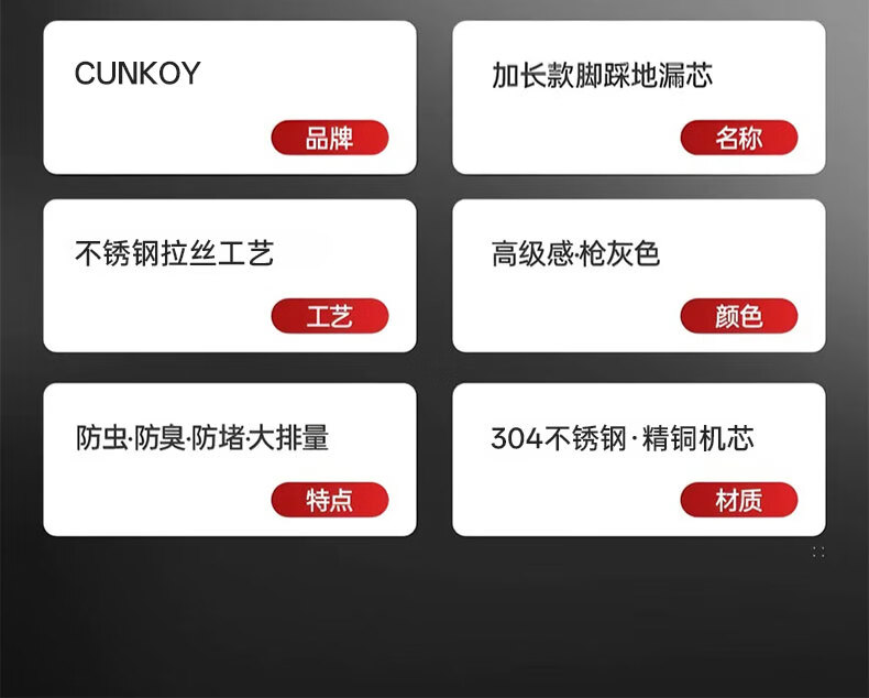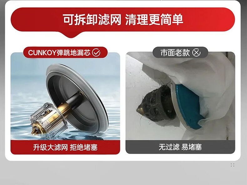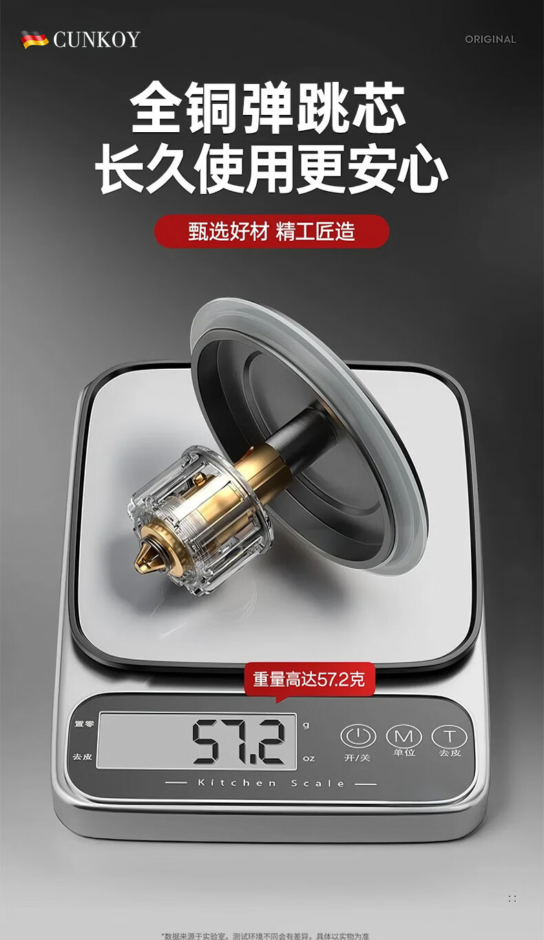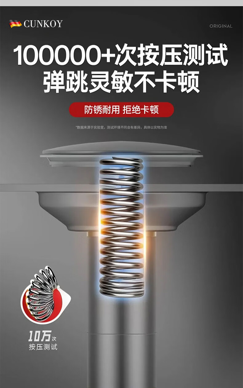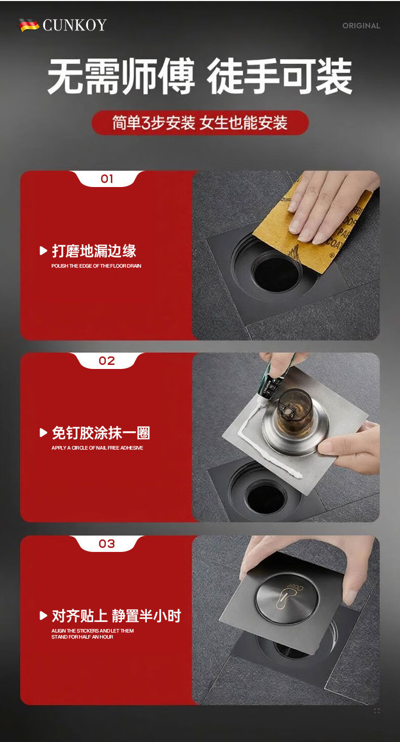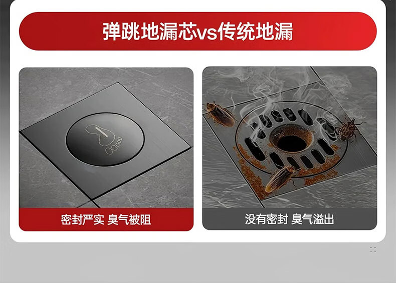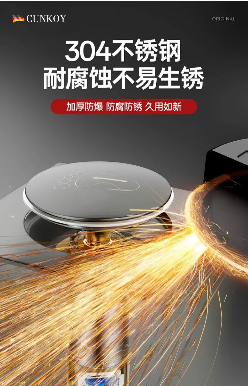 CUNKOY【德国】断层地漏防臭芯卫生间下水道防臭防反味神器脚踩弹跳地漏 弹跳式地漏翻新盖【断层专用】 加厚304面板丨极速排水丨防臭防虫