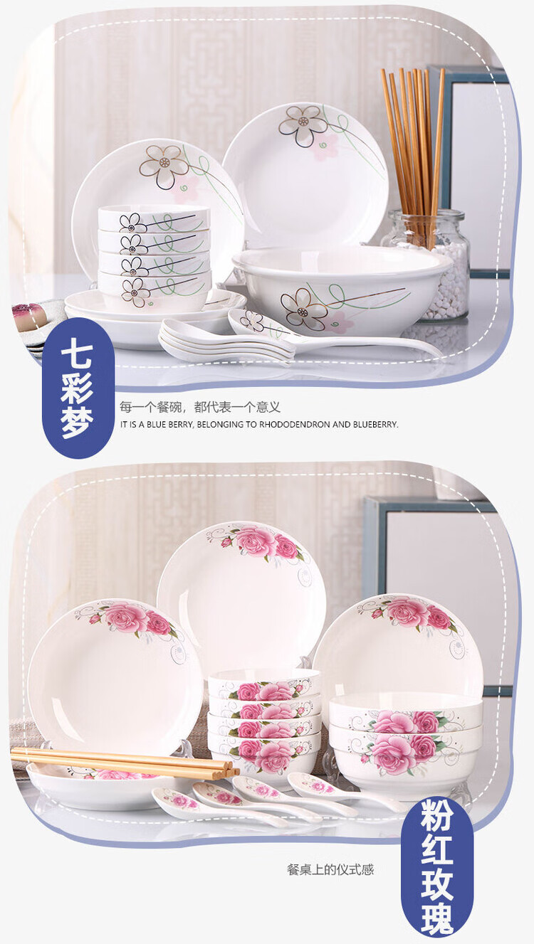 泰禧阁家用餐具碗碟套装 景德镇陶瓷餐具中式风套装 简约陶瓷碗盘筷组合 纯白无瑕 2碗2勺