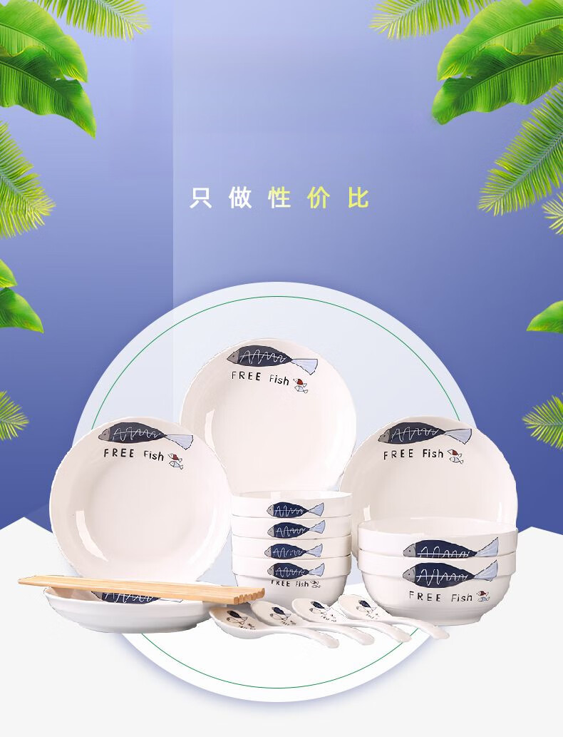 贺川屋陶瓷鱼盘奶油风高颜值陶瓷盘釉下彩12英寸蒸鱼盘菜盘子