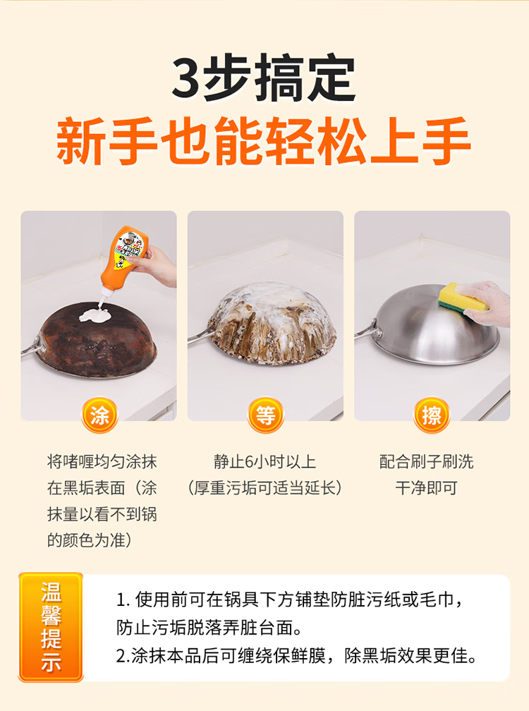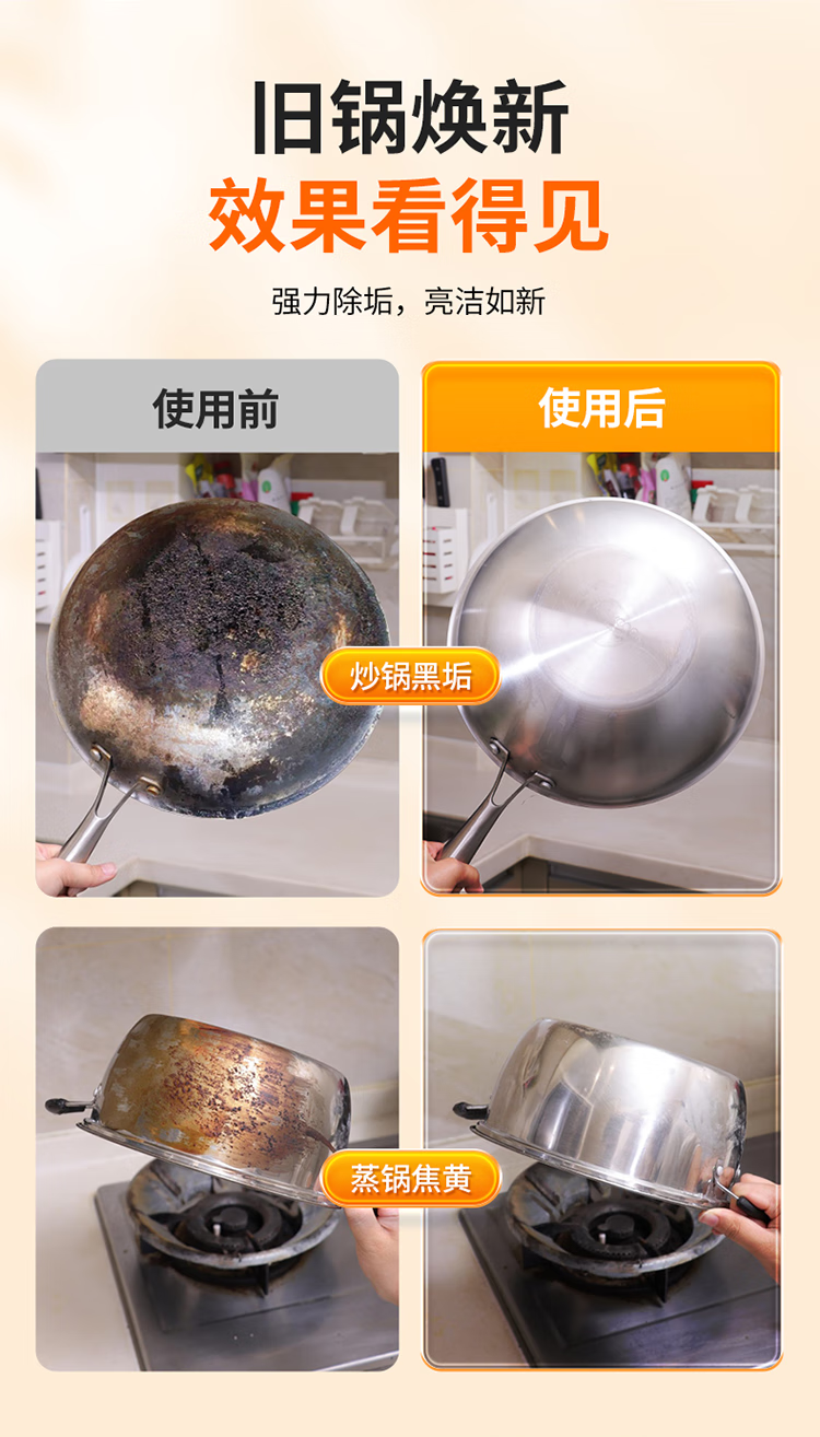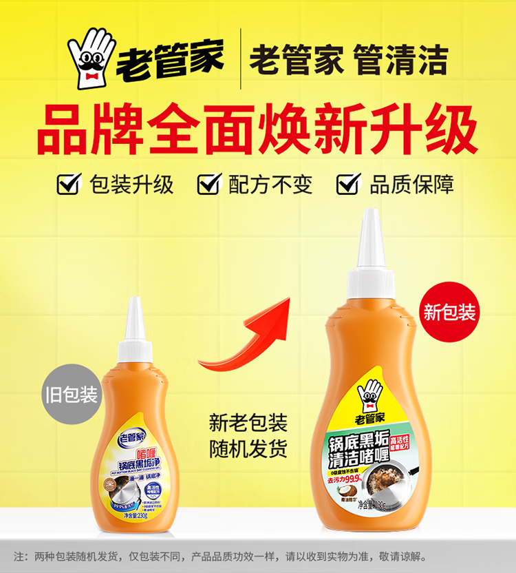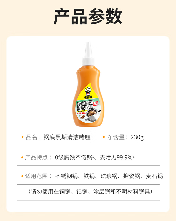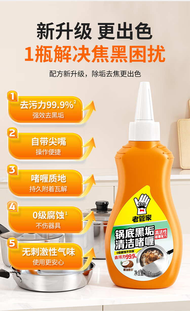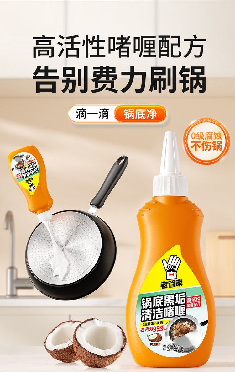 老管家洗锅底黑垢清洁剂不锈钢锅厨房铁锅啫喱椰子油强力去污黑焦除垢 230g*1瓶【体验装】