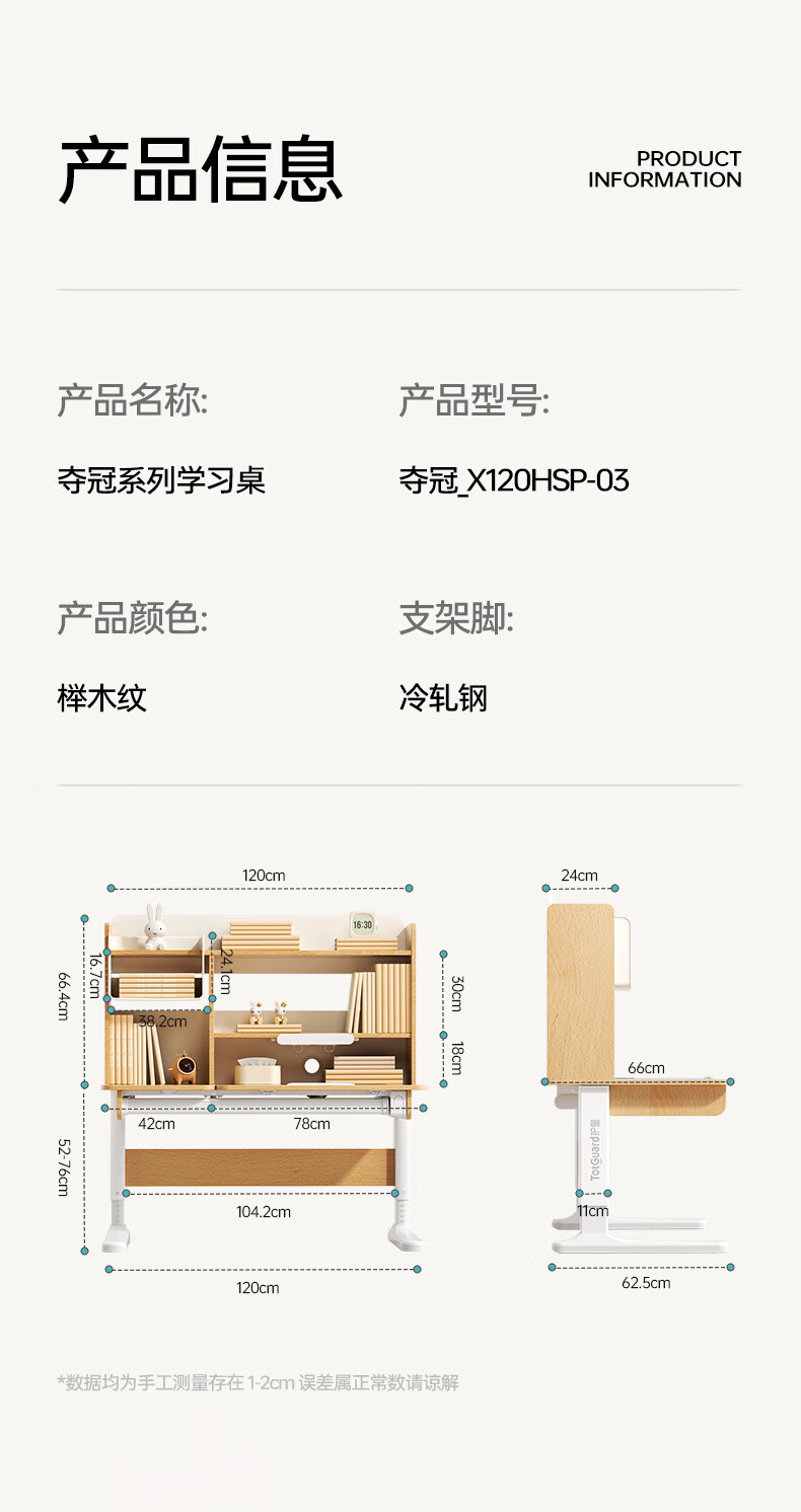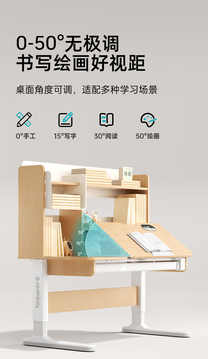 护童(Totguard)线下款儿童学习桌 夺冠_X120HSP-03_榉木纹(单桌)