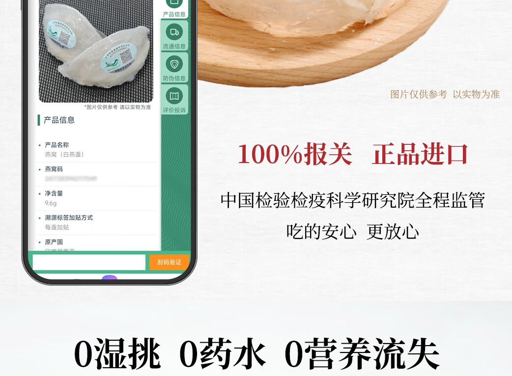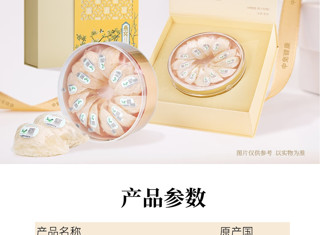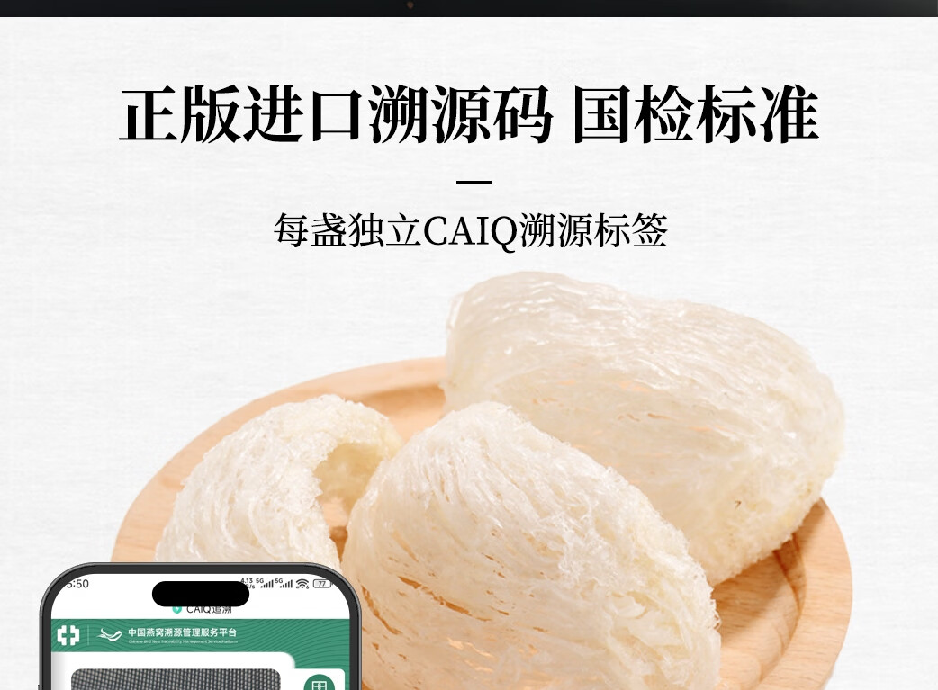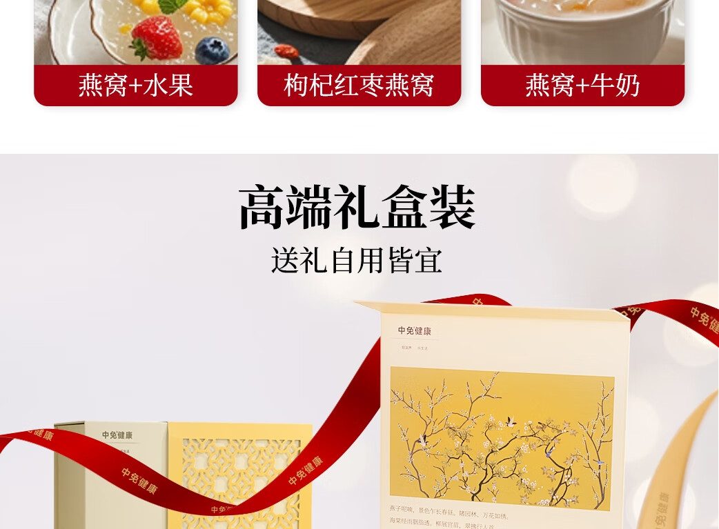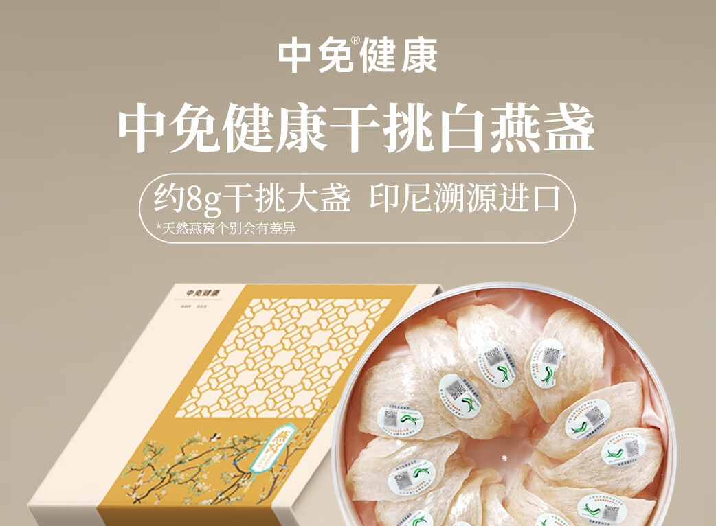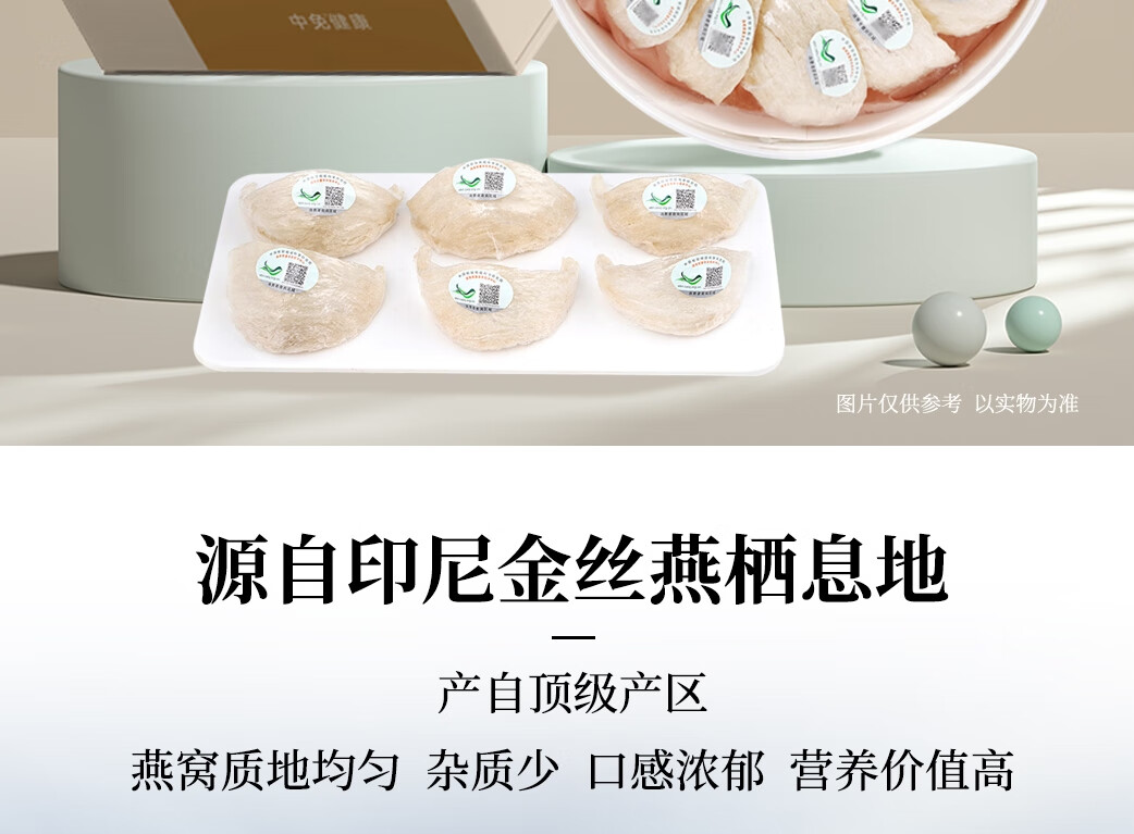 中免健康印尼进口干燕窝干挑燕盏100g特级可溯源老人孕妇营养滋补品礼盒