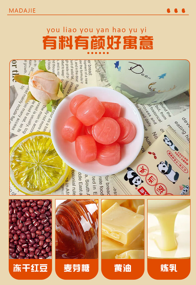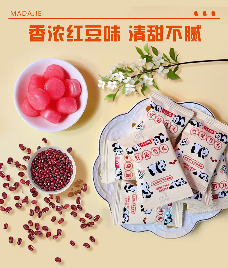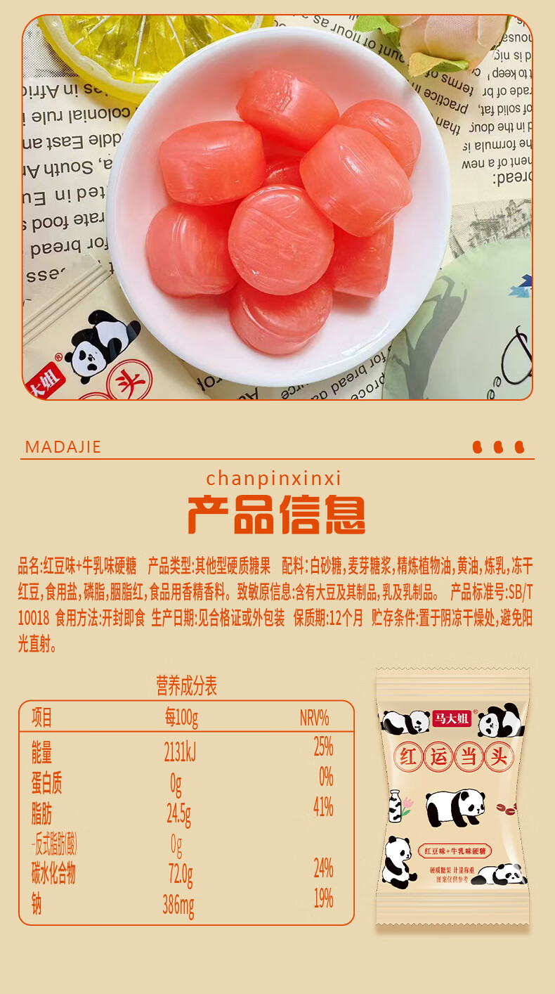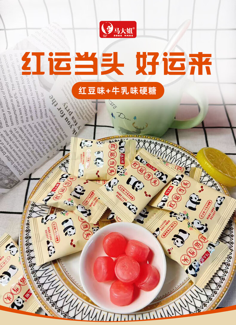 马大姐 鸿运当头红豆味糖果 500g约85颗 商务招待 开业典礼 升学 喜糖