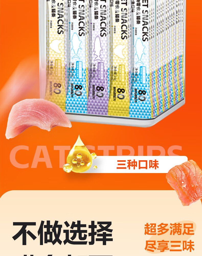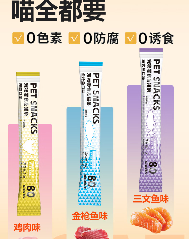 京七猫条100支桶装全价猫零食成猫幼猫通用鲜肉猫湿粮罐头混合口味