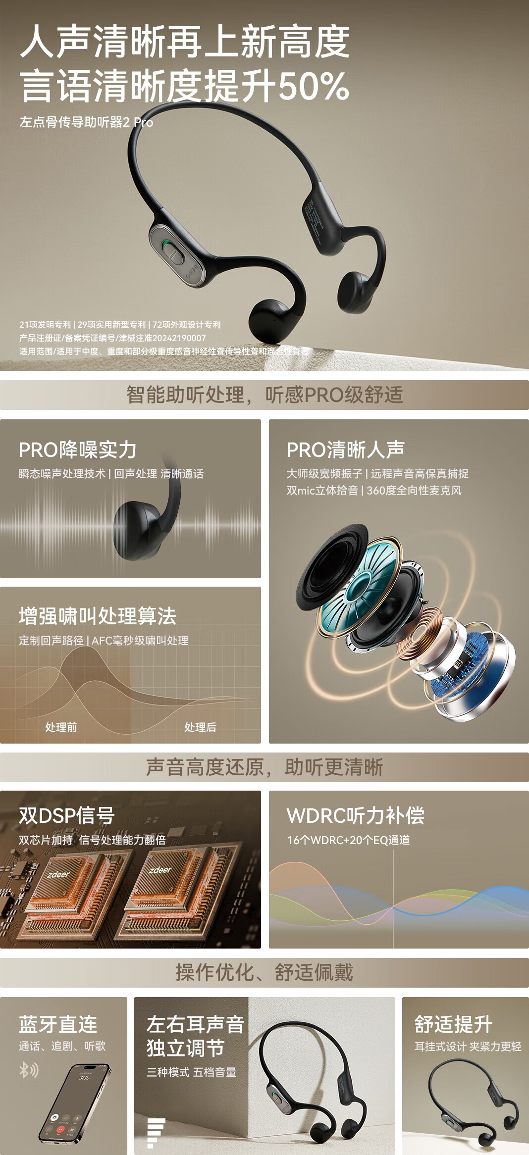 左点zdeer 尊享骨传导助听器防丢中老人不入耳 轻中重度听损耳背G2402