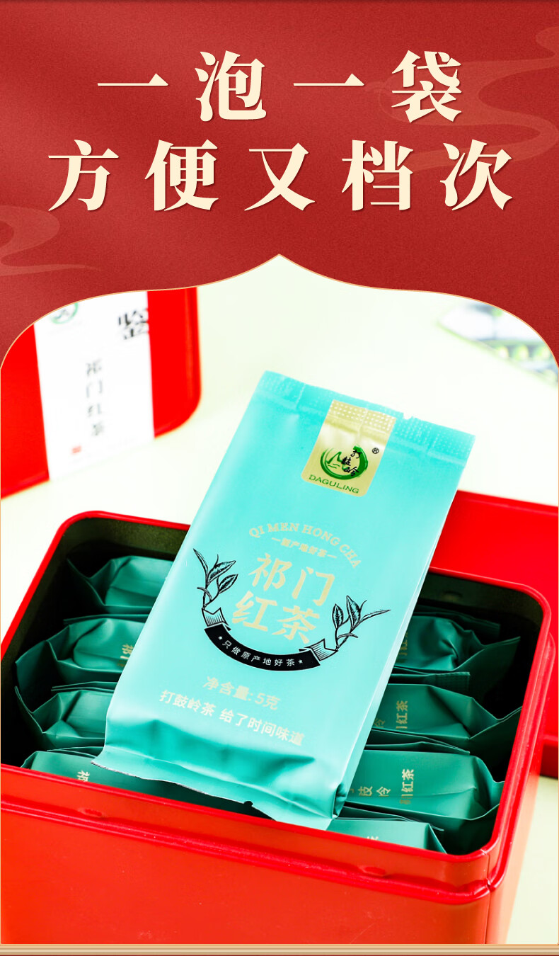 打鼓岭茶叶红茶 祁门红茶祁红香螺新茶春茶30g(5g*6袋)独立小泡袋包装