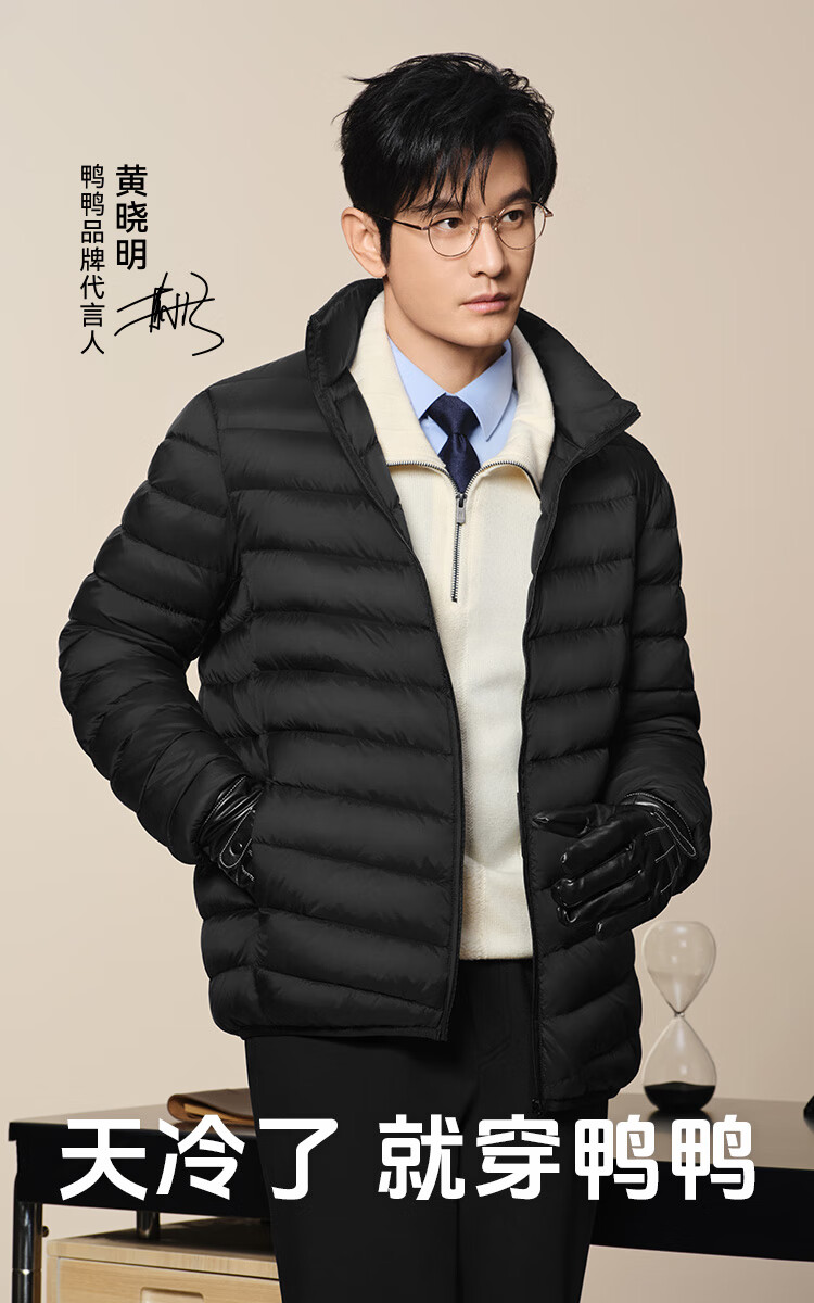 鸭鸭(YAYA)黄晓明同款轻薄羽绒服男短款秋冬新款男士立领保暖防寒轻便外套KX 黑色 L 175