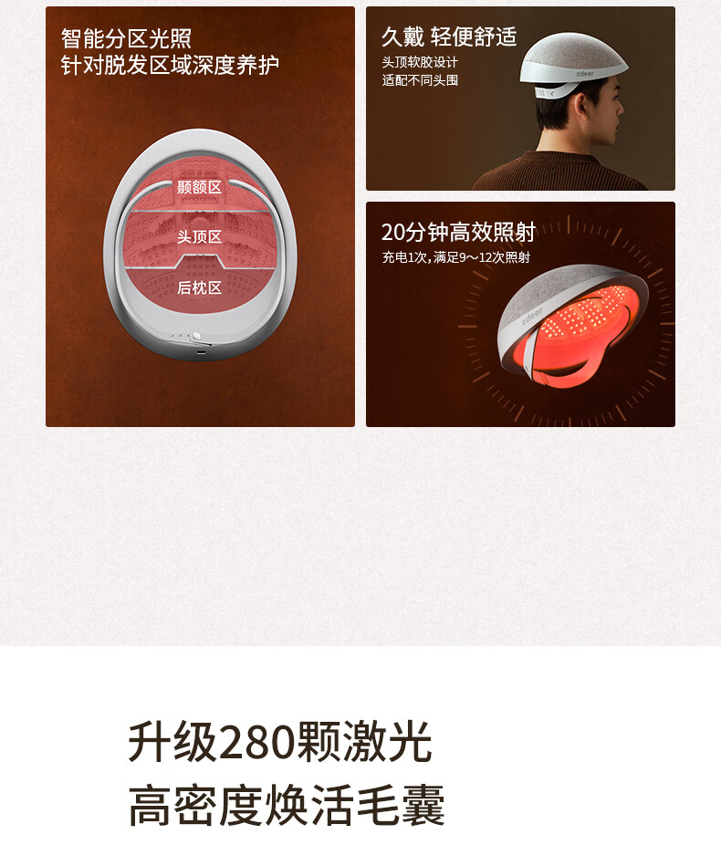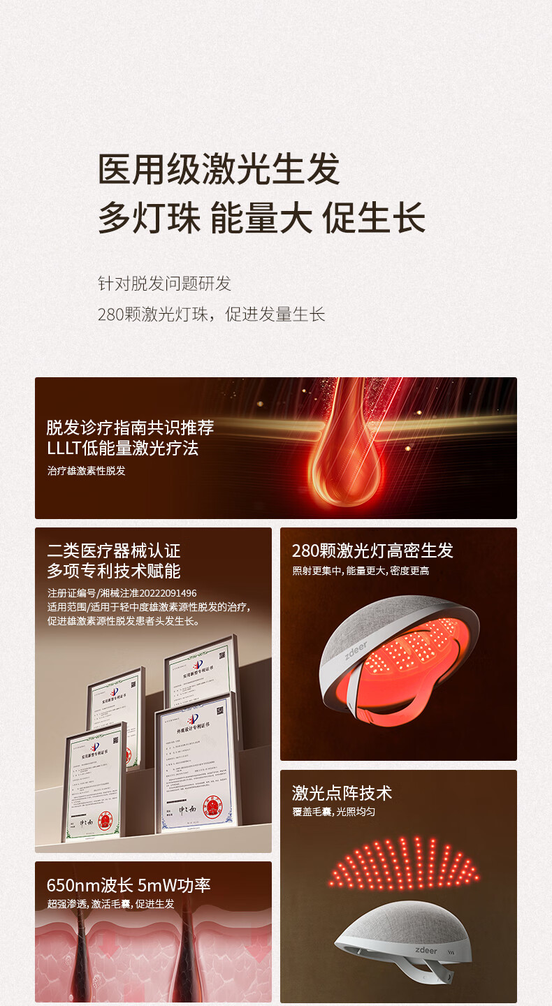 左点激光生发仪帽红光头皮护理仪防脱增发家用智能健发仪280中重度