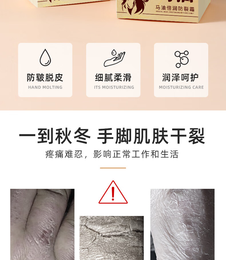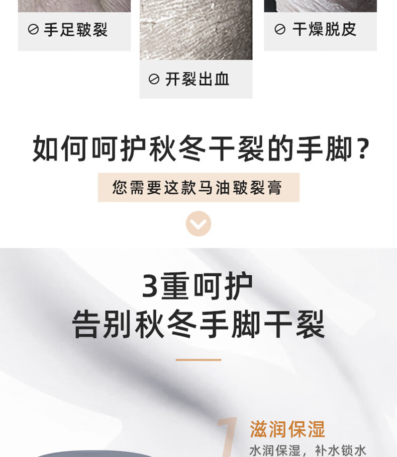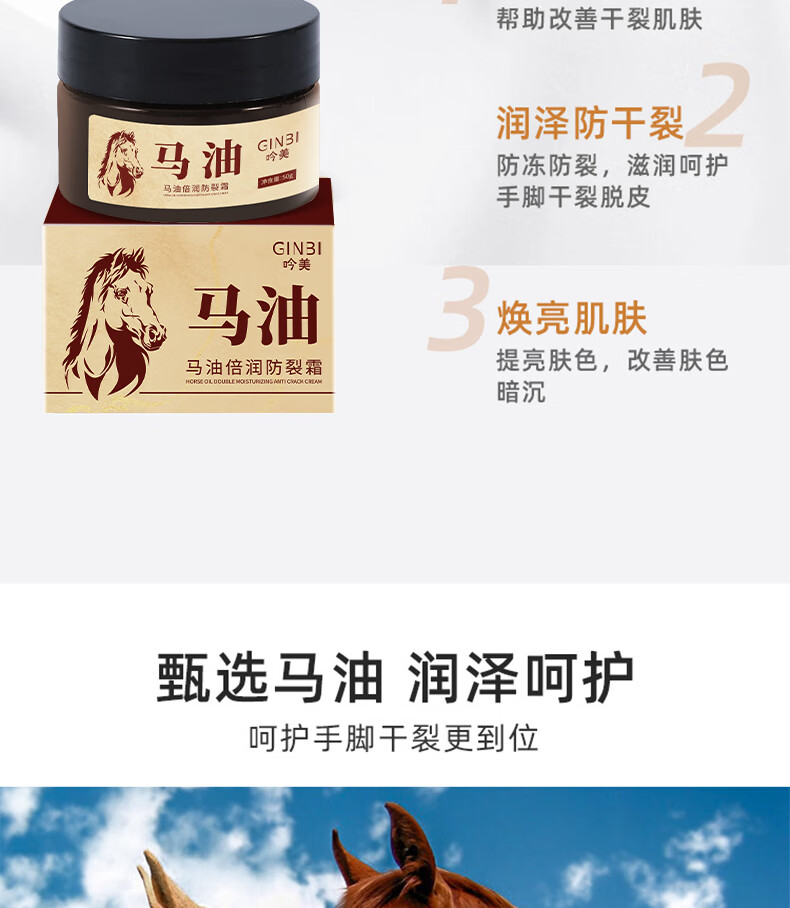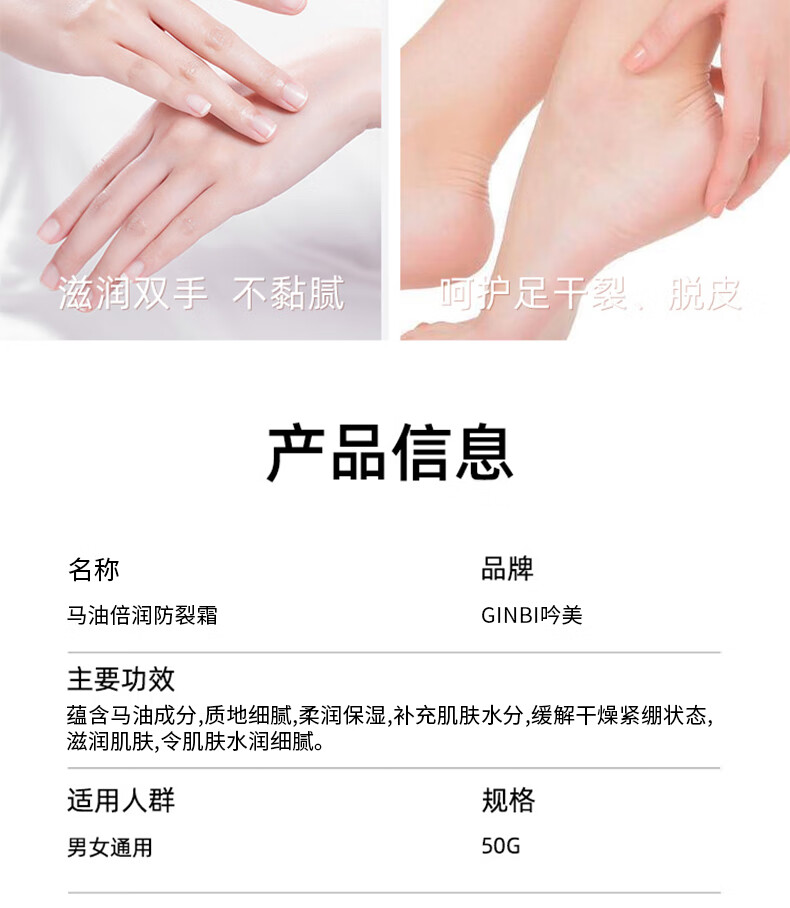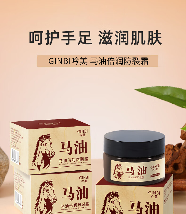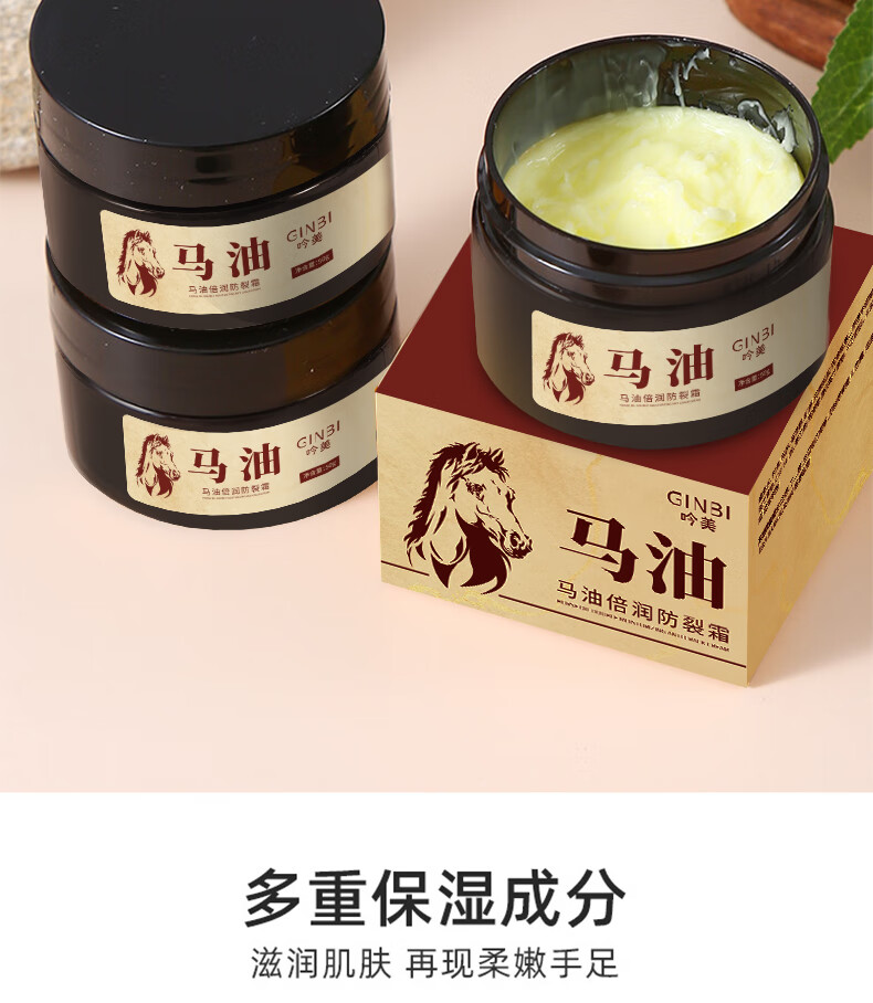 GINBI马油防冻裂膏手足裂口手脚干燥开裂防护保湿补水护手护脚霜 【囤货】马油防裂膏 50g ×3瓶