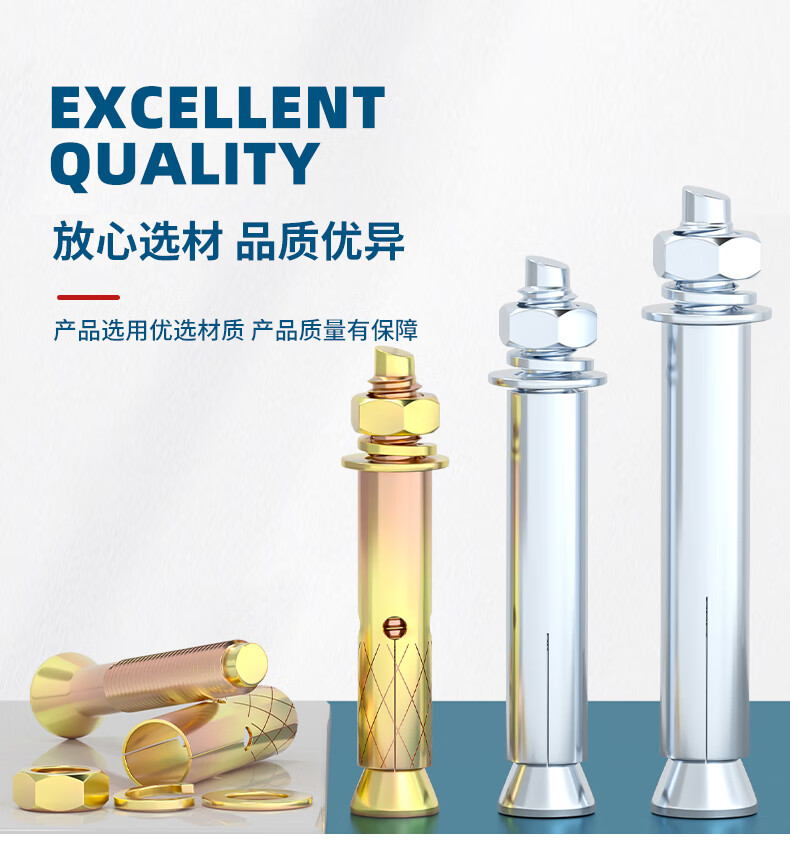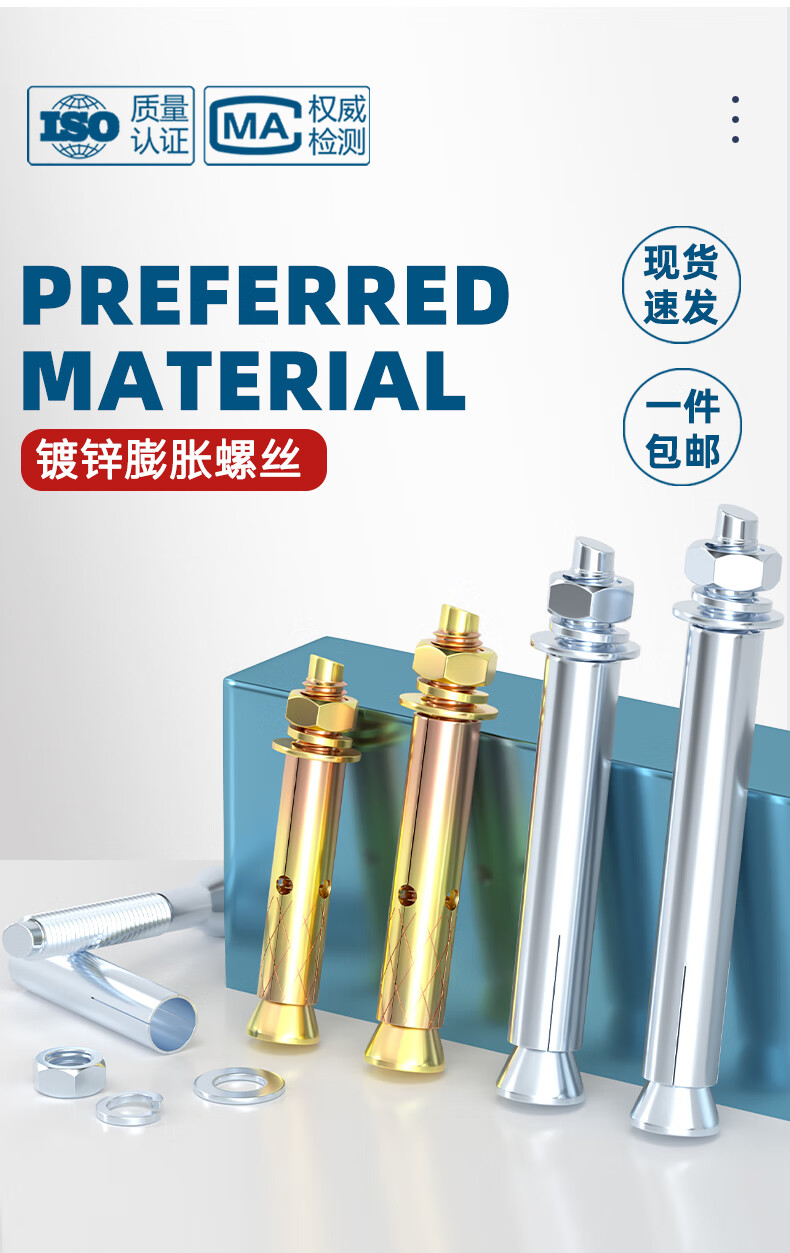 天卓五金国标铁镀彩锌膨胀螺丝外膨胀螺栓拉爆爆炸螺钉膨胀管M6M8M10M12mm 镀蓝锌-M6*60(50个)