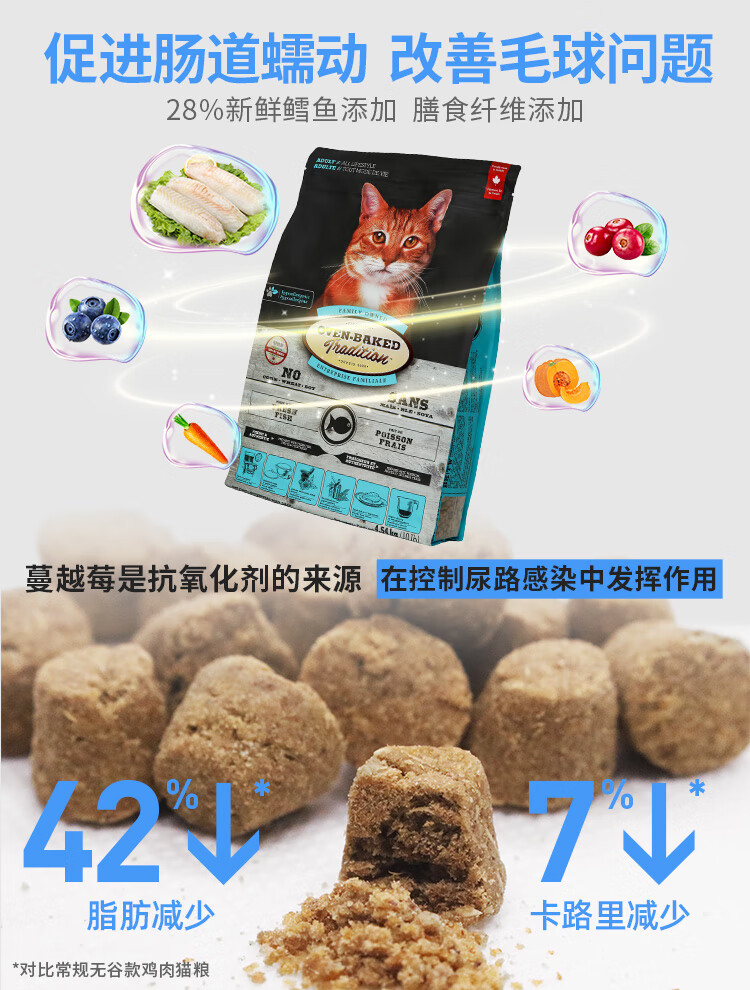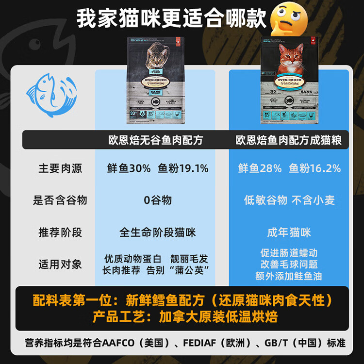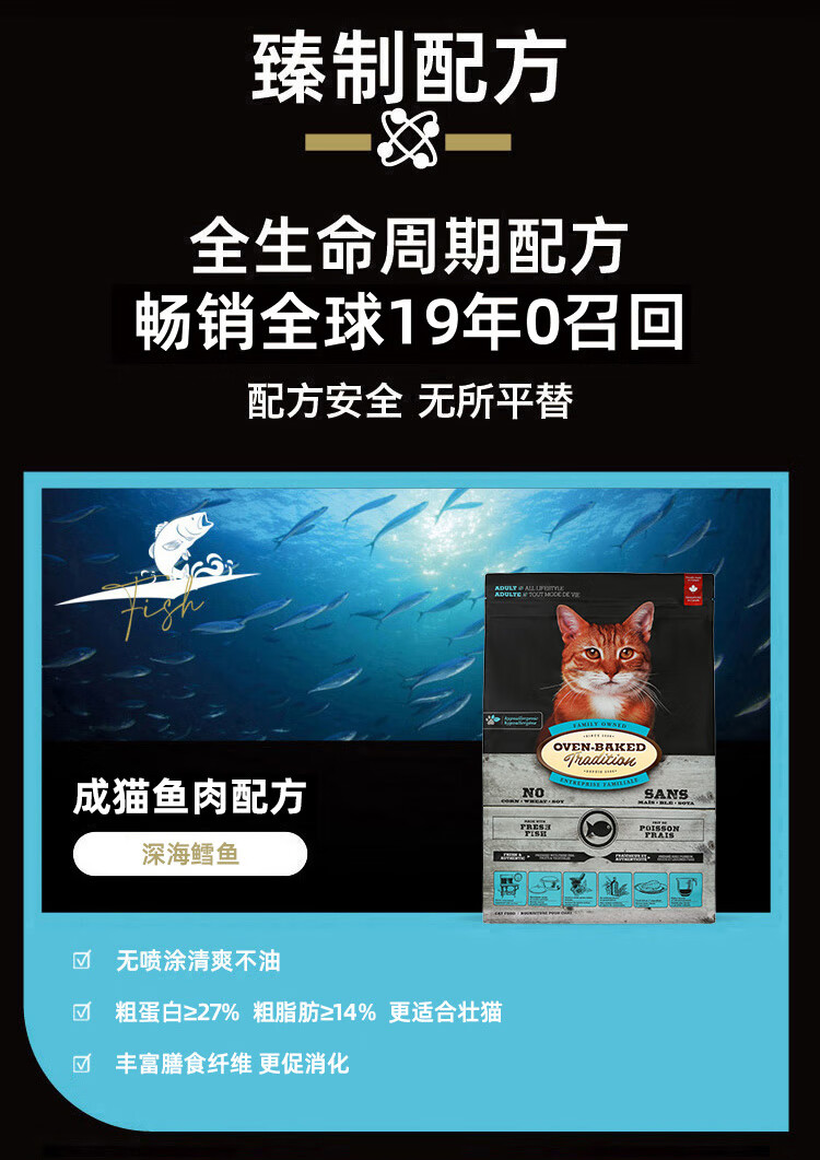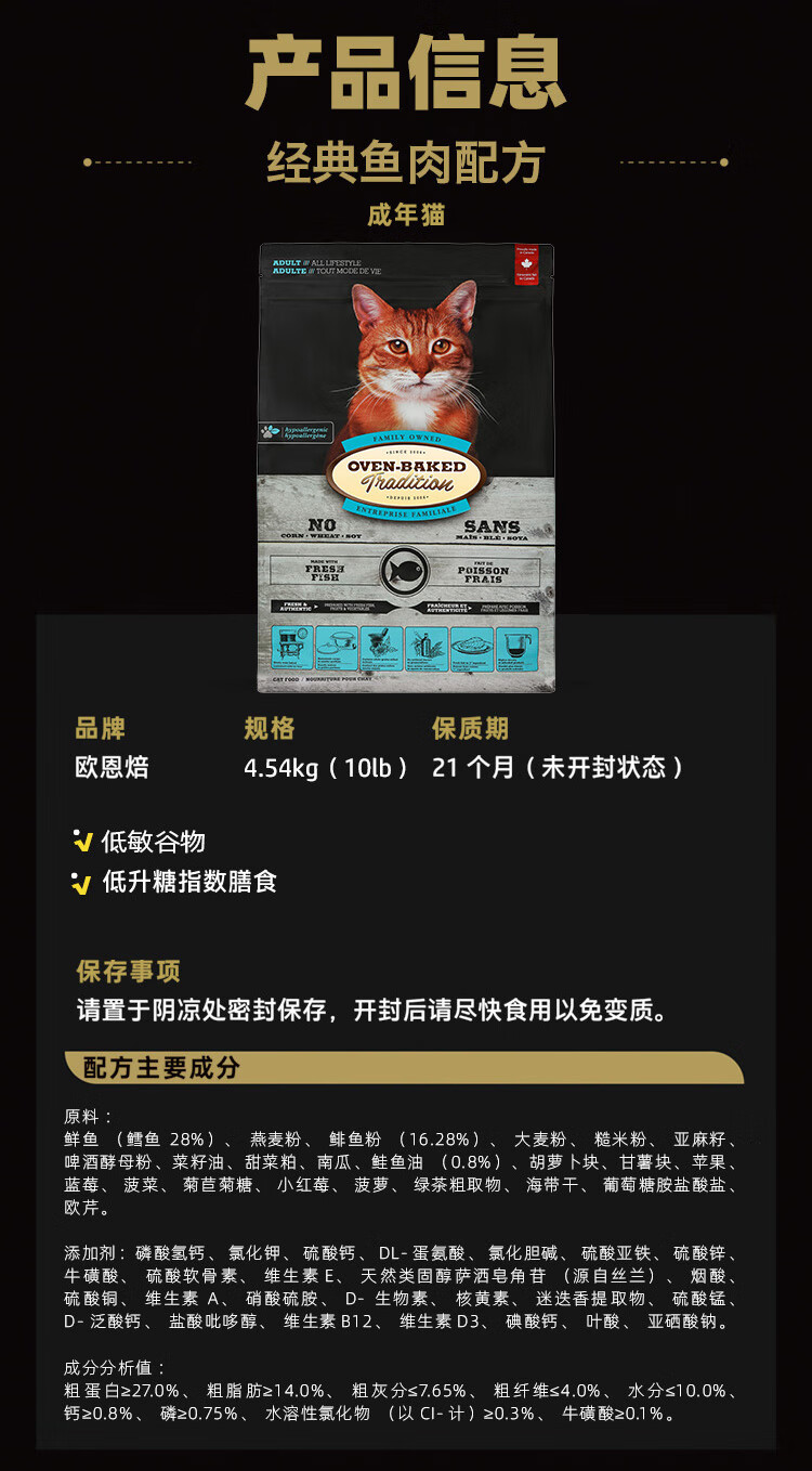 欧恩焙加拿大原装进口猫粮低温烘焙经典鱼肉配方成猫粮10磅/4.54kg