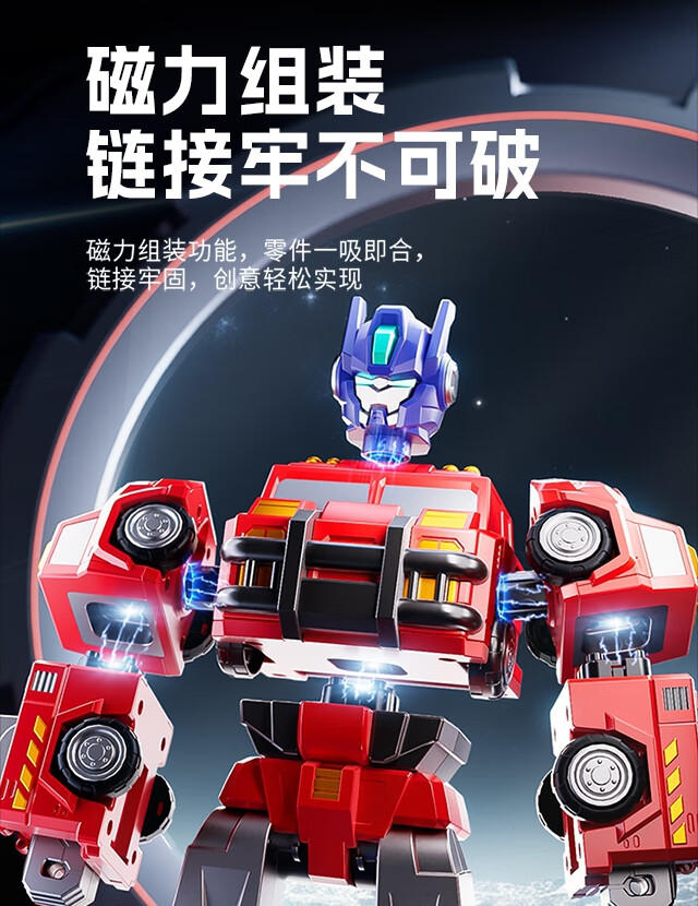 班迪萌(BANDIMENG)儿童玩具3-6岁男孩磁力拼装百变机器人变形工程车8-12早教礼物 特警磁力变形机器人【礼盒+礼袋 男生生日礼物见面礼实用高端