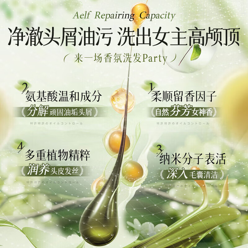 欧贝斯(obeis)精油奢养去屑洗发水500ml茶树精油舒缓止痒洗发露男女通用洗头膏