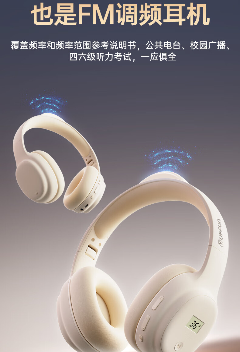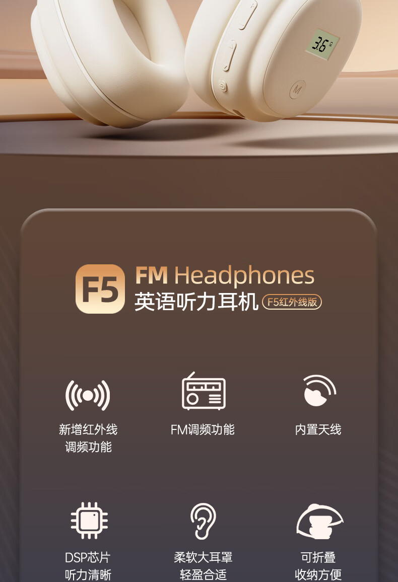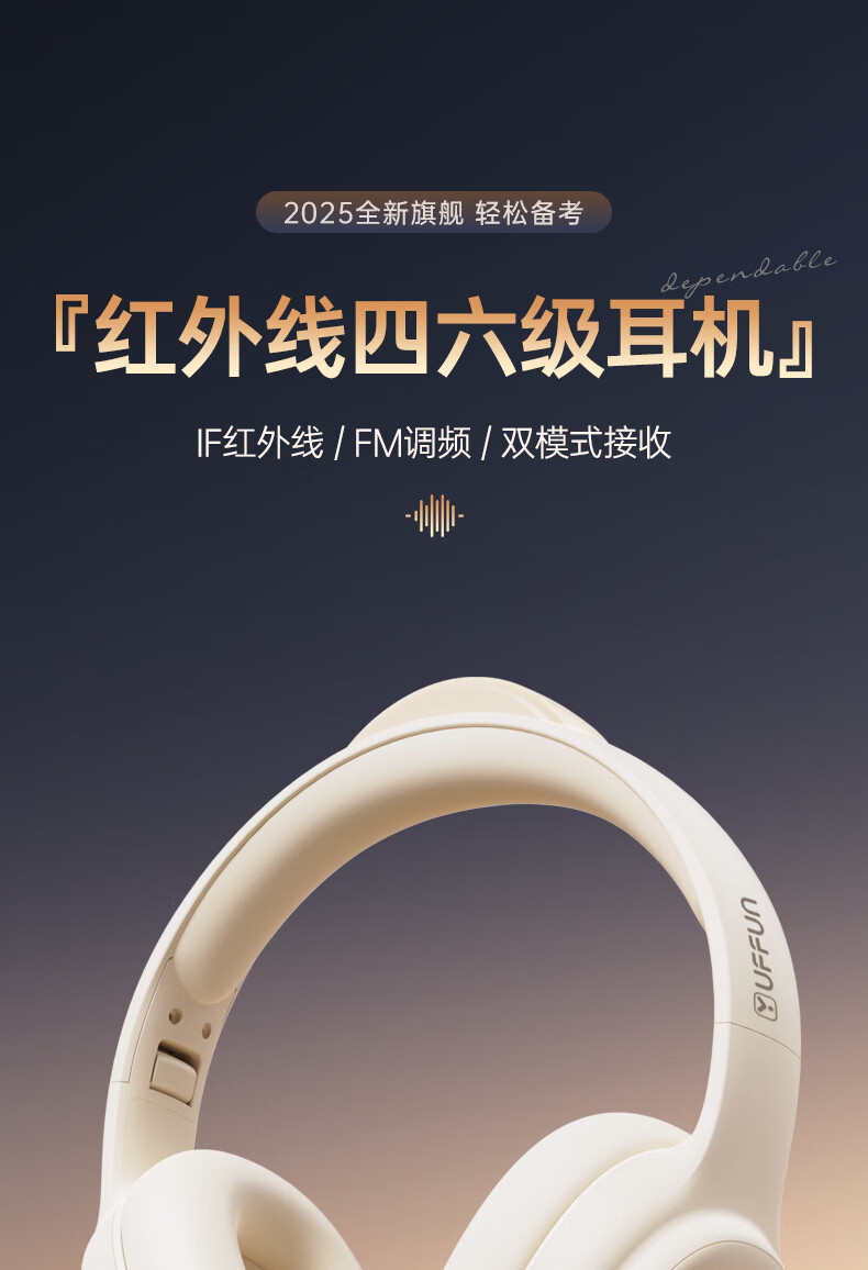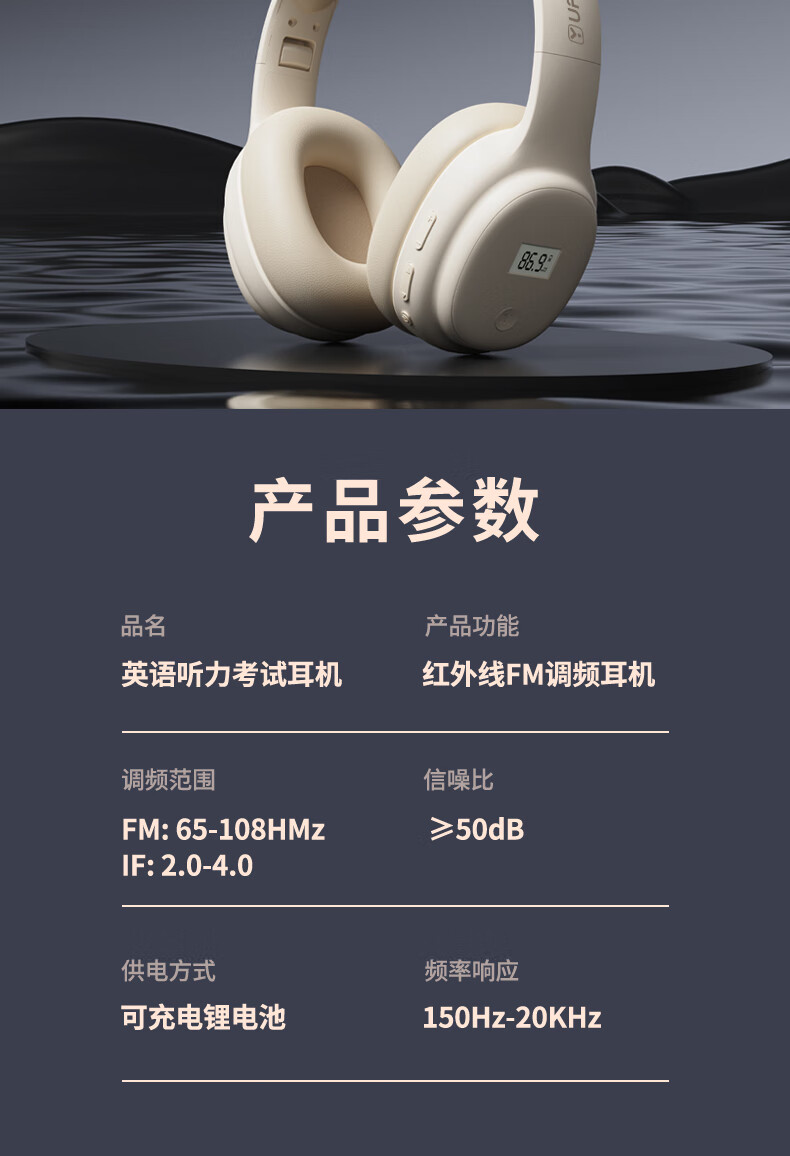 摩利奥红外线英语四六级听力耳机IF红外2.0-4.0全覆盖大学考试专用FM调频四级六级4级46级三级头戴式耳麦 米白【红外2.0-4.0+调频两用】送充电线 不送音频线