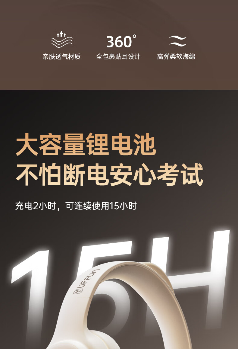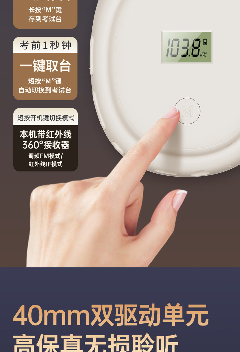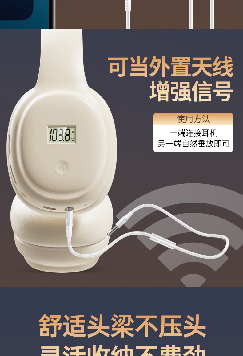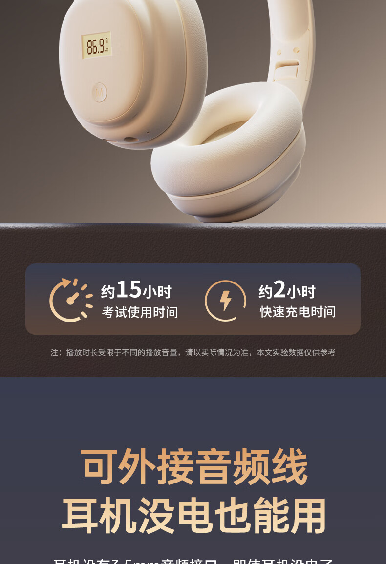 摩利奥红外线英语四六级听力耳机IF红外2.0-4.0全覆盖大学考试专用FM调频四级六级4级46级三级头戴式耳麦 米白【红外2.0-4.0+调频两用】送充电线 不送音频线
