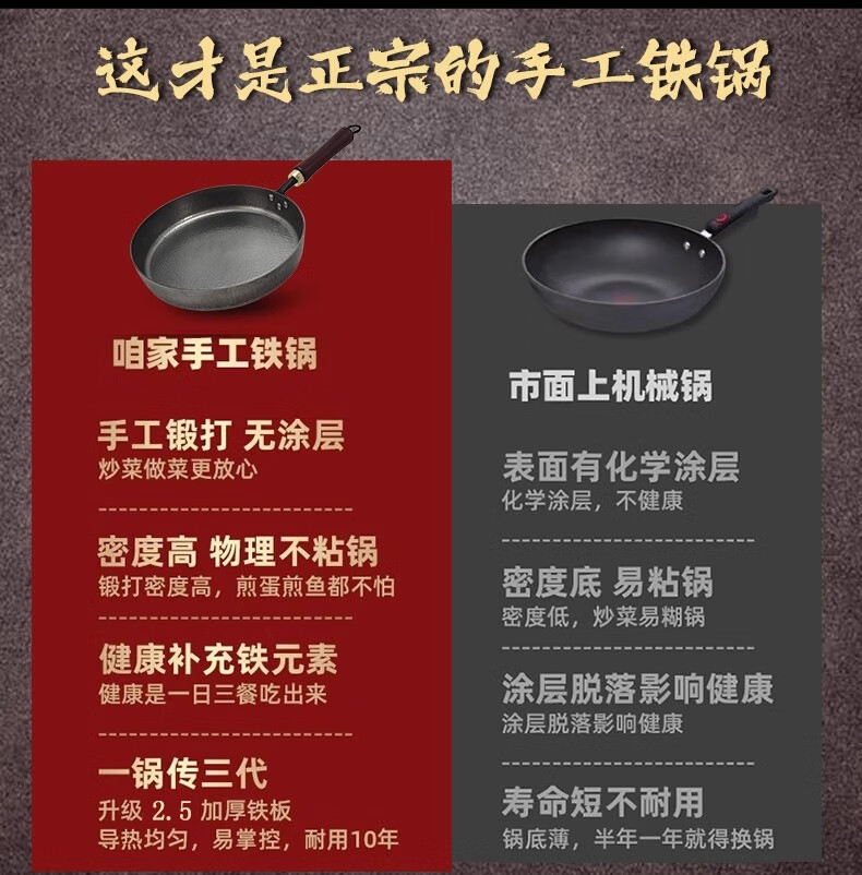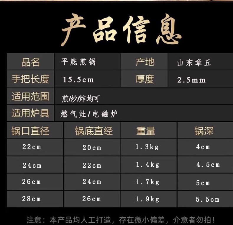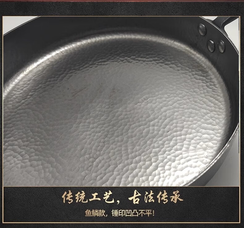 谭铁匠章丘平底锅煎锅升级热锻手工铁锅无涂层不粘烙饼煎牛排燃气灶专用 升级款-热锻手工煎锅(赠木盖+铁铲) 26cm